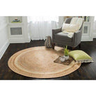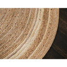Kerala Sunrise Jute Rug in Beige, the perfect addition to your home decor. This round area rug is a top-seller, offering a warm and organic touch to any space. Whether placed under your dining table, in the entryway, or living room, this transitional rug adds charm and style. The tan and gold base with ivory rings creates a timeless design that complements any decor. Hand-braided and stitched by skilled village weavers using vintage techniques, this rug is not only beautiful but also durable - ideal for high-traffic areas.