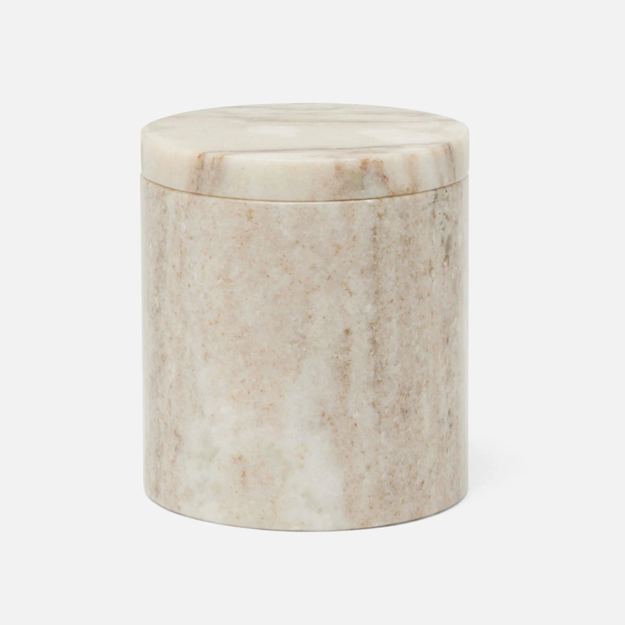 Athlone is crafted from panels of marble strategically placed to showcase the material's natural striations and stripes. The marble's thickness and sharp corners give this Beigey, neutral collection a certain crispness.