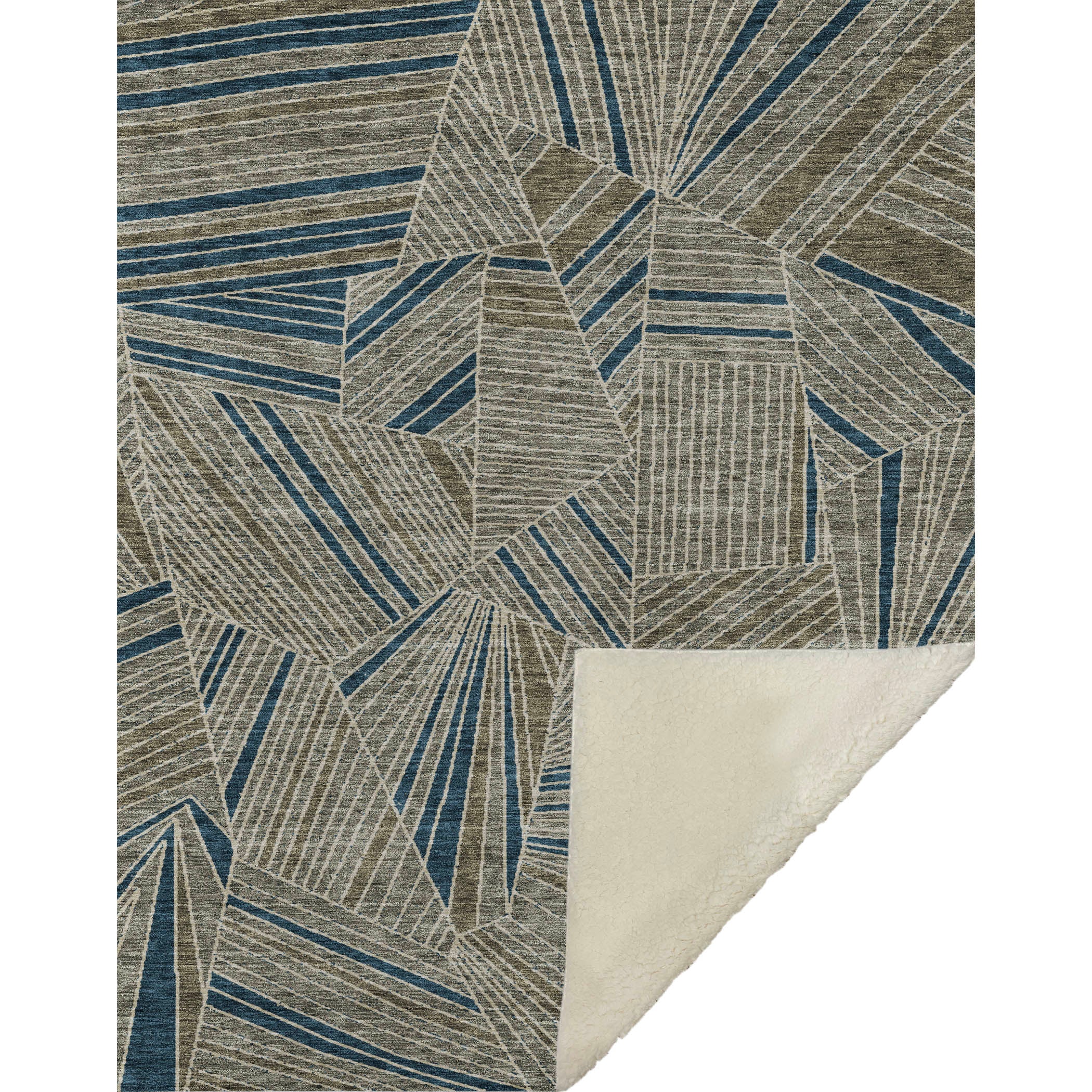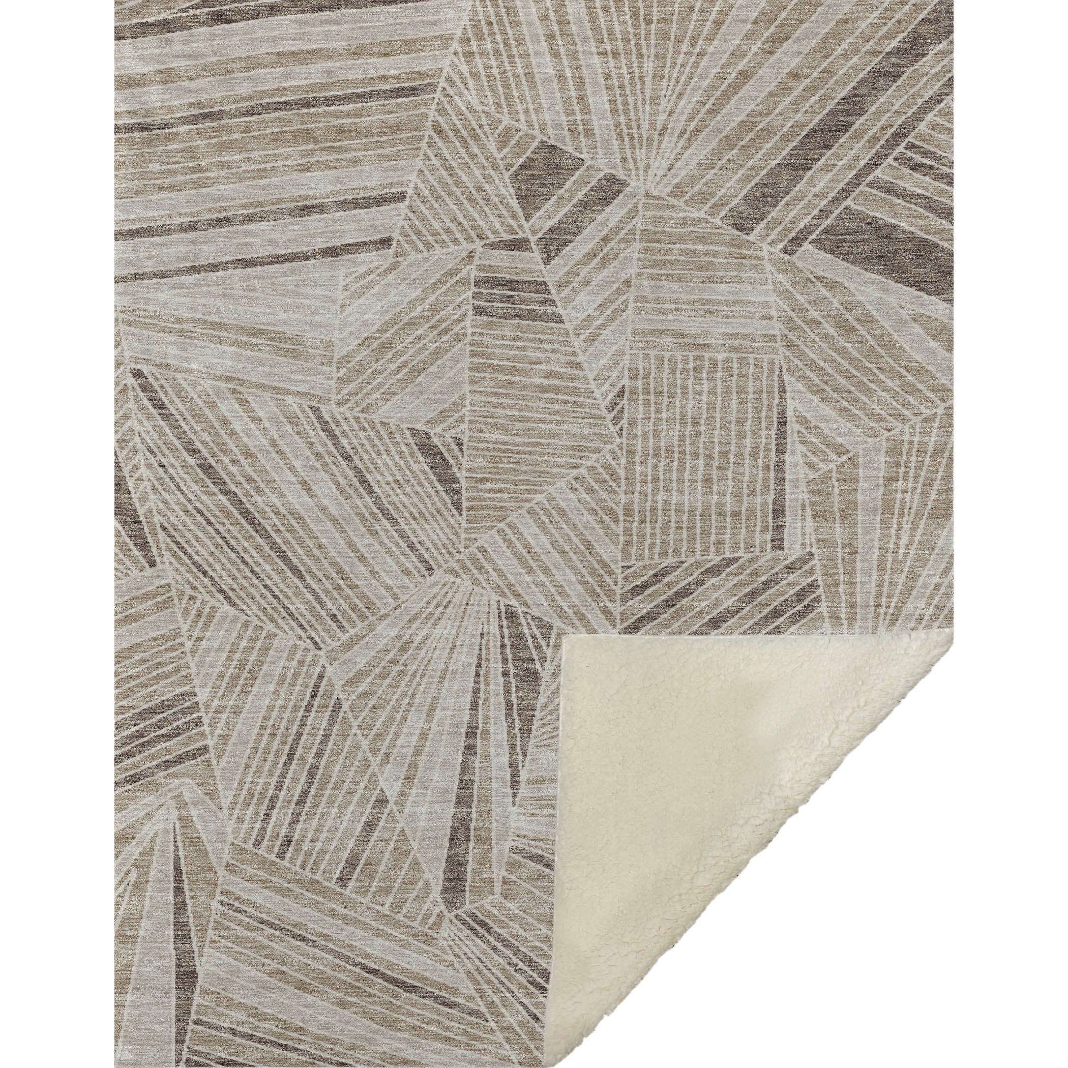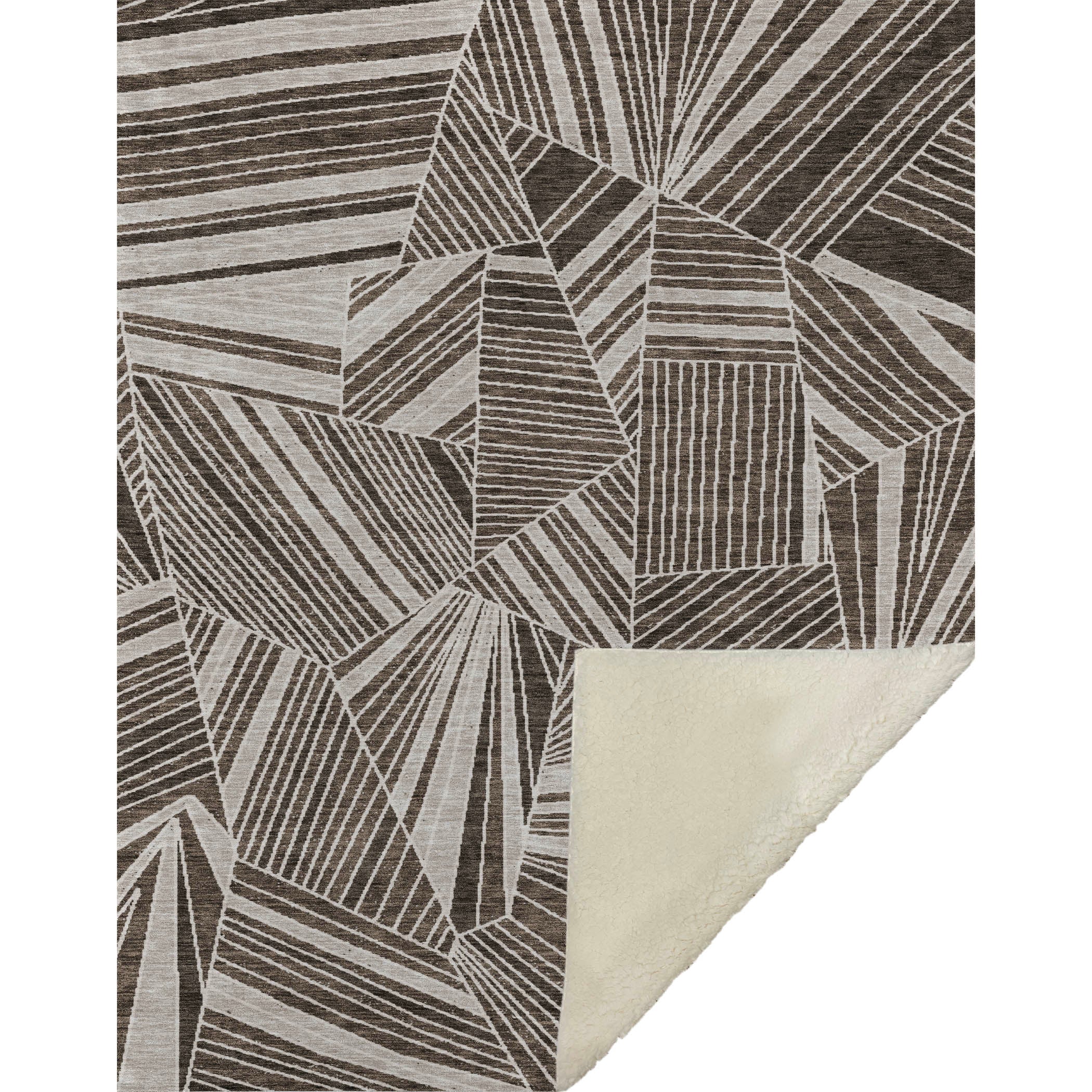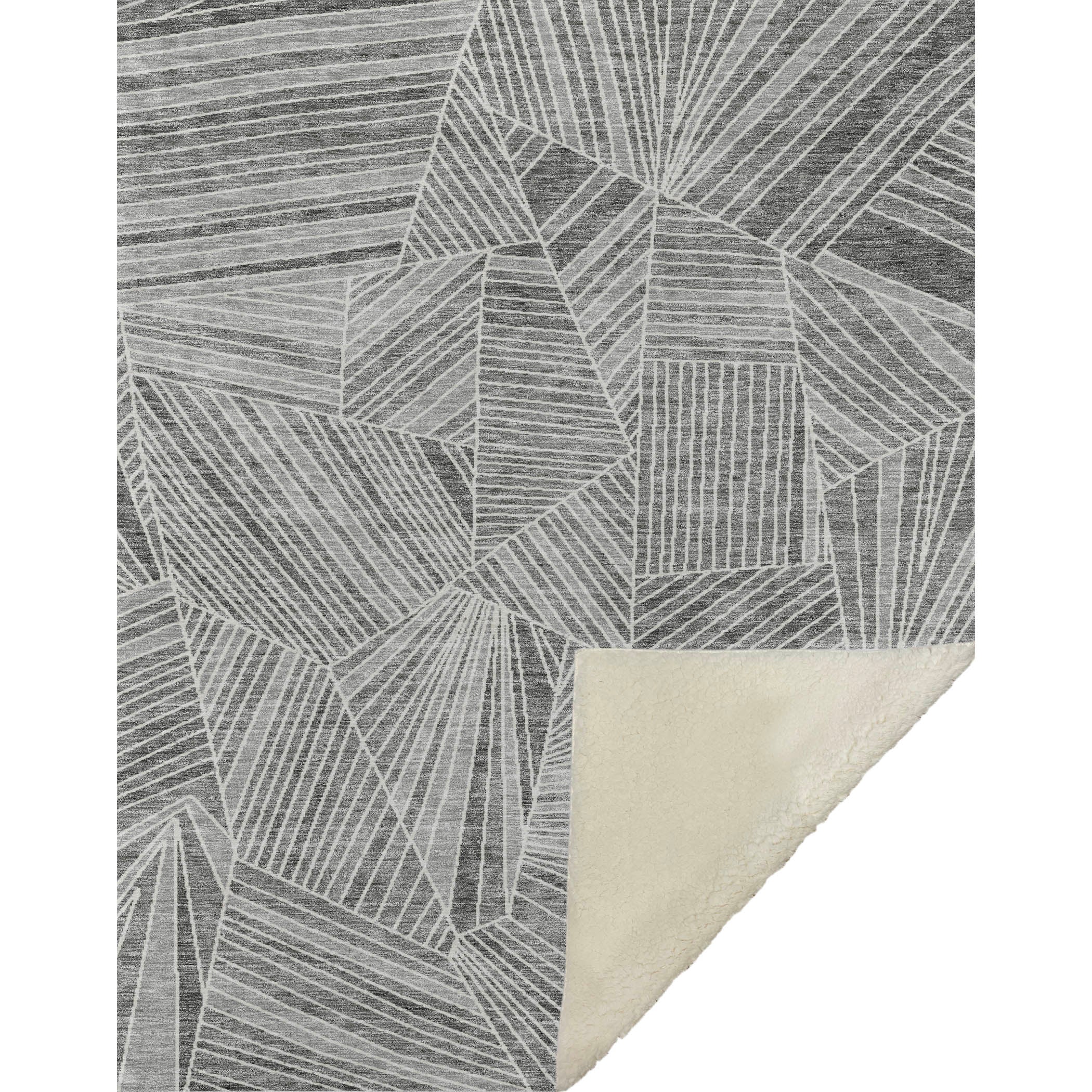 Discover the art of angles and lines with this geometric masterpiece that effortlessly complements any space. Designed to offer a transitional style, it showcases a striking pattern that captivates your senses and adds character to your décor. Oversized at 50" x 70", indulge in the unrivaled softness of its luxurious front and warm sherpa backing. Constructed from fade-resistant polyester microfiber, it's ideal for both indoor and covered outdoor relaxation, while its Premium Machine Washable nature ensures care is a breeze.