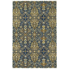 Amaranta AMA06 22 Navy area rug, a stunning addition to any living space. The name Amaranta, meaning unfading, perfectly captures the essence of this collection featuring nature-inspired motifs. Traditional floral and leaf patterns are given a contemporary update with a color palette ranging from vibrant bolds to soothing neutrals. Crafted in India, each rug is hand-tufted using 100% wool for durability and quality. The blended Gabbeh yarns add a unique touch with color variation throughout. This particular rug showcases a beautiful combination of Navy, Blue, Steel, Linen, Butterscotch, Yellow, and Light Brown hues.