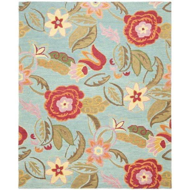 exquisite Blossom BLM675A rug, crafted with a luxurious 100% pure virgin wool pile. Each piece is meticulously hand-hooked with intricate floral designs in soothing neutral tones, creating a timeless and elegant look for any space. Made exclusively in India for Safavieh, this collection showcases exceptional craftsmanship and attention to detail.