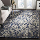 Dip Dye DDY511N Navy Grey rug from the Safavieh Dip Dye Collection. Experience a harmonious fusion of class and sophistication with these Moroccan-inspired rugs. Crafted from 100% Premium Wool, each rug is meticulously hand-tufted to create elegant designs that elevate your traditional decor effortlessly. The rugs boast a dense, plush pile that exudes luxury and durability, promising long-lasting beauty and comfort in your home.