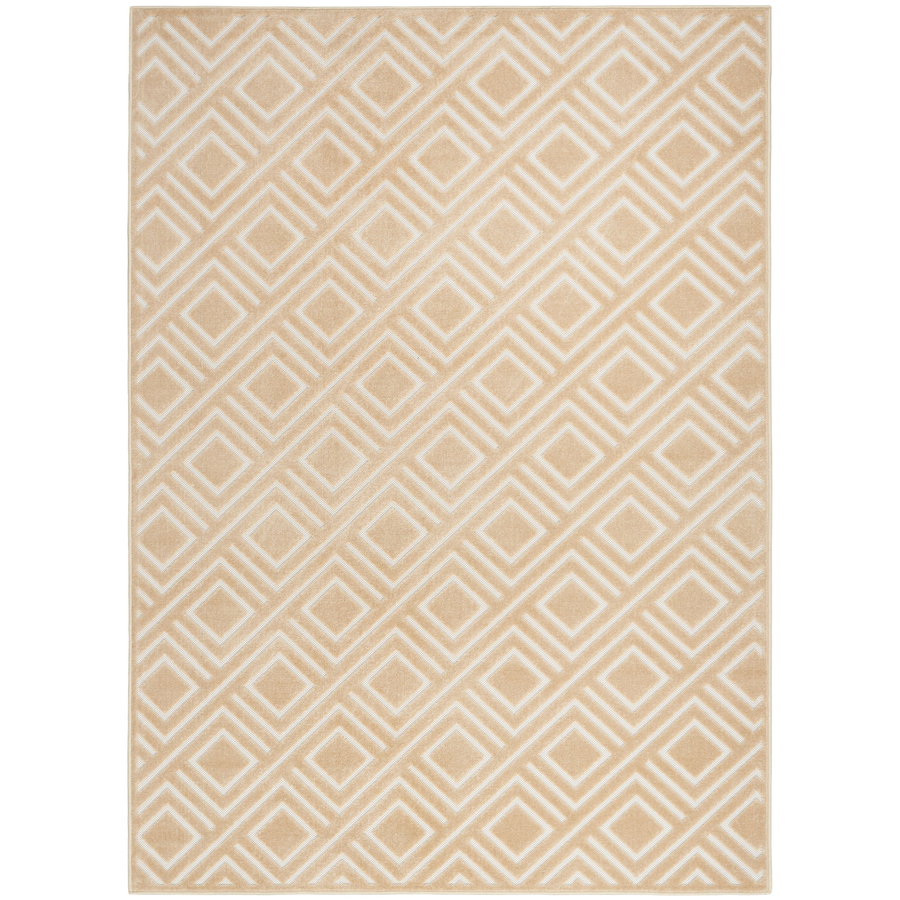 Care Free CAF03 Taupe rug, a stylish addition to your home decor. This taupe diamond rug from the Care Free Collection effortlessly blends chic and casual vibes, making it perfect for any space. The geometric design features a simple two-tone palette that is easy to coordinate with various decor styles. Elevate your room with its dimensional high-low pattern, creating a visually striking depth that will impress your guests.