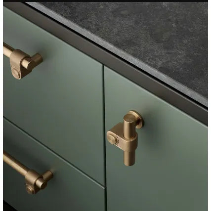 A T-bar made from solid metal, with a durable brass EPL finish, and refined by hand. This T-bar features our signature rough-cast knuckle, hand polished solid metal bar and a debossed B+P insignia on the knuckle.
