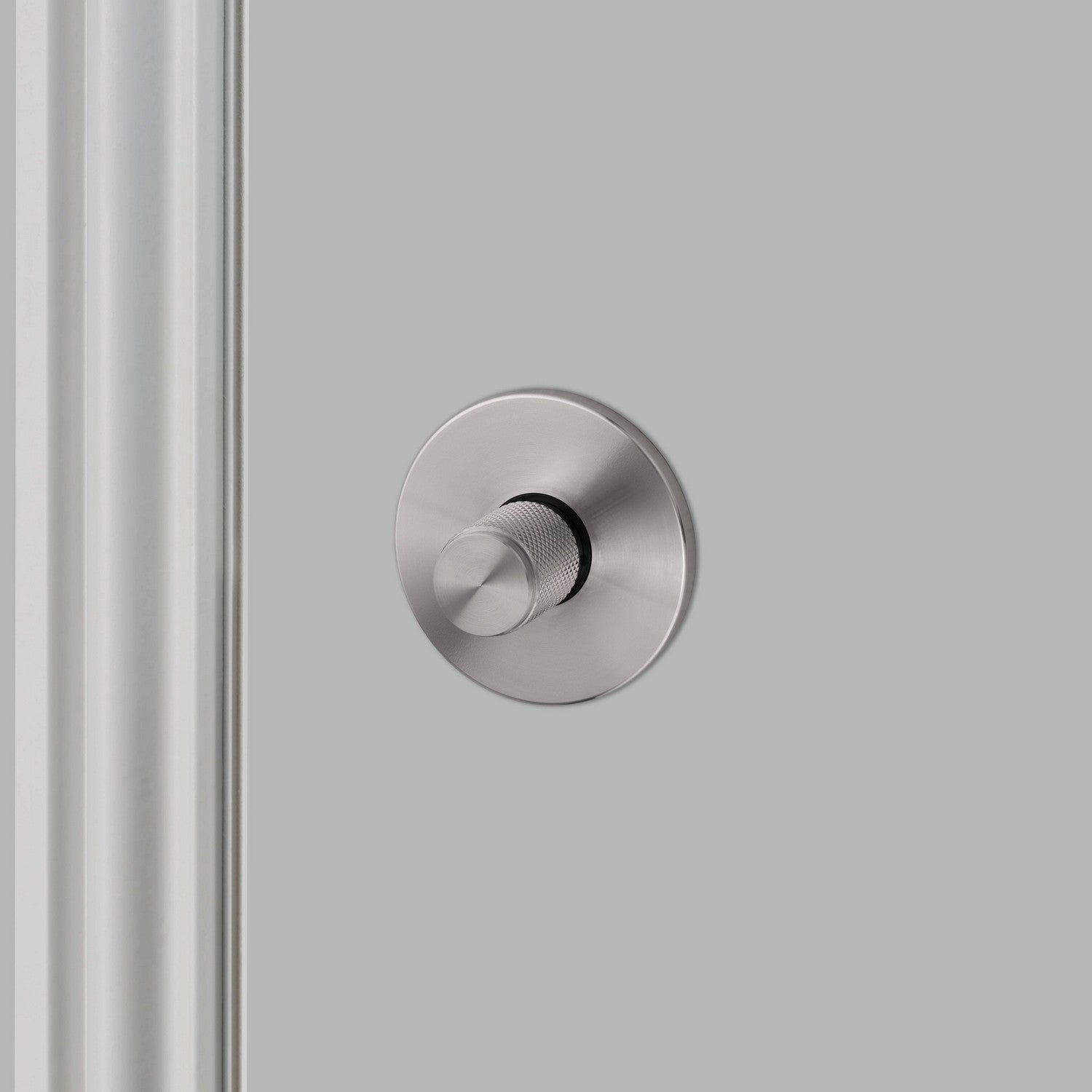 An indoor thumbturn lock made from solid metal featuring a solid knob with tactile diamond-cut cross knurling. Works on all internal bath room & toilet doors and includes a safety coin-release. It looks sublime combined with our matching cross door handles.