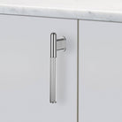 An L-bar made from anodised black metal. This L-bar features our signature, diamond-cut, linear-knurl pattern, a precision milled oval stalk and is refined by hand. It comes with a small, black metal, oval metal disc. They work great on cabinet doors, cupboards, kitchen units and just about anything that can open.