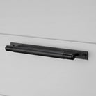 A pull bar made from solid black anodised metal. This pull bar features our signature, diamond-cut, cross-knurl pattern and is refined by hand. The pull bar includes a rectangular backplate made from solid black anodised metal and finished with black metal coin screws. They work great on cabinet doors, wardrobe drawers, cupboards, kitchen units and just about anything that can open.