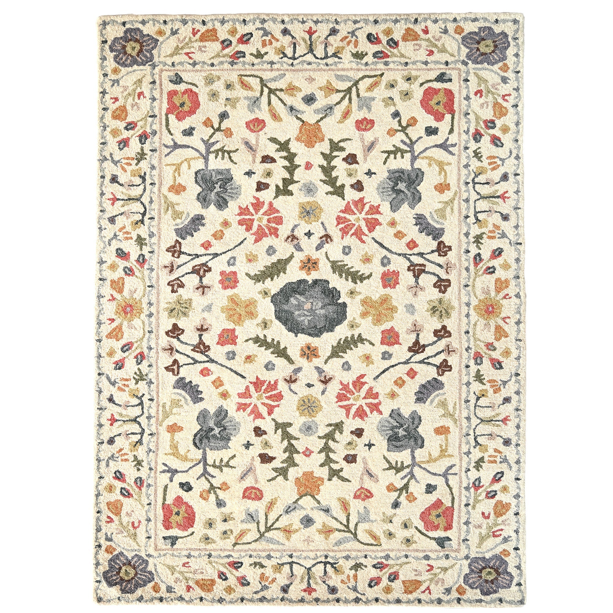 A robust blend of tones emboldens our Avanti with colorful character. Stylized mosaic patterning and traditional motifs heralds it eclectic roots, crafted in 100% wool with hand-worked accents.