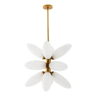 Offering a nod to Atomic design, the Starling presents a clever twist on the classic sputnik silhouette. The chandelier is rendered as a bundle of elongated ellipsoids in matte white swirl glass attached to a framework of antique brass steel. Finish will vary.