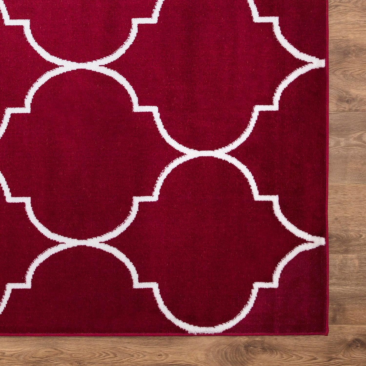Introduce a vibrant touch to your living space with the Jefferson Morocco Trellis Red area rug. Crafted with stain-resistant fabrics and durable olefin yarn, this rug is perfect for indoor use. The design seamlessly blends minimalist elegance with contemporary fashion trends, making it an ideal addition to any home decor style.
