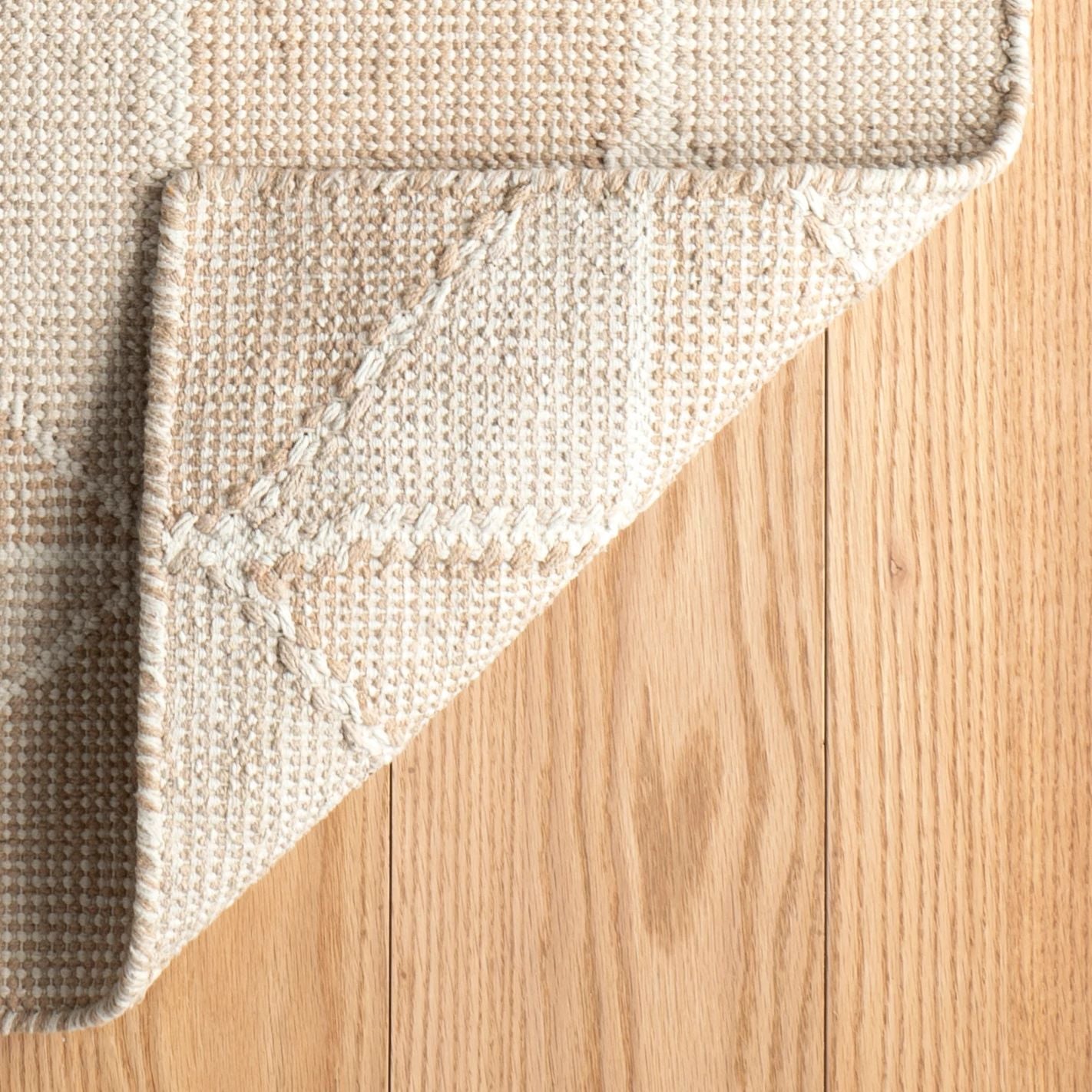 This loom knotted cotton beauty features a geometric diamond pattern with multi tonal textural stitches executed in a two colors, creating an intriguingly hypnotic effect on this contemporary rug. Handwoven in India, this is a compelling composition for the modern interior.