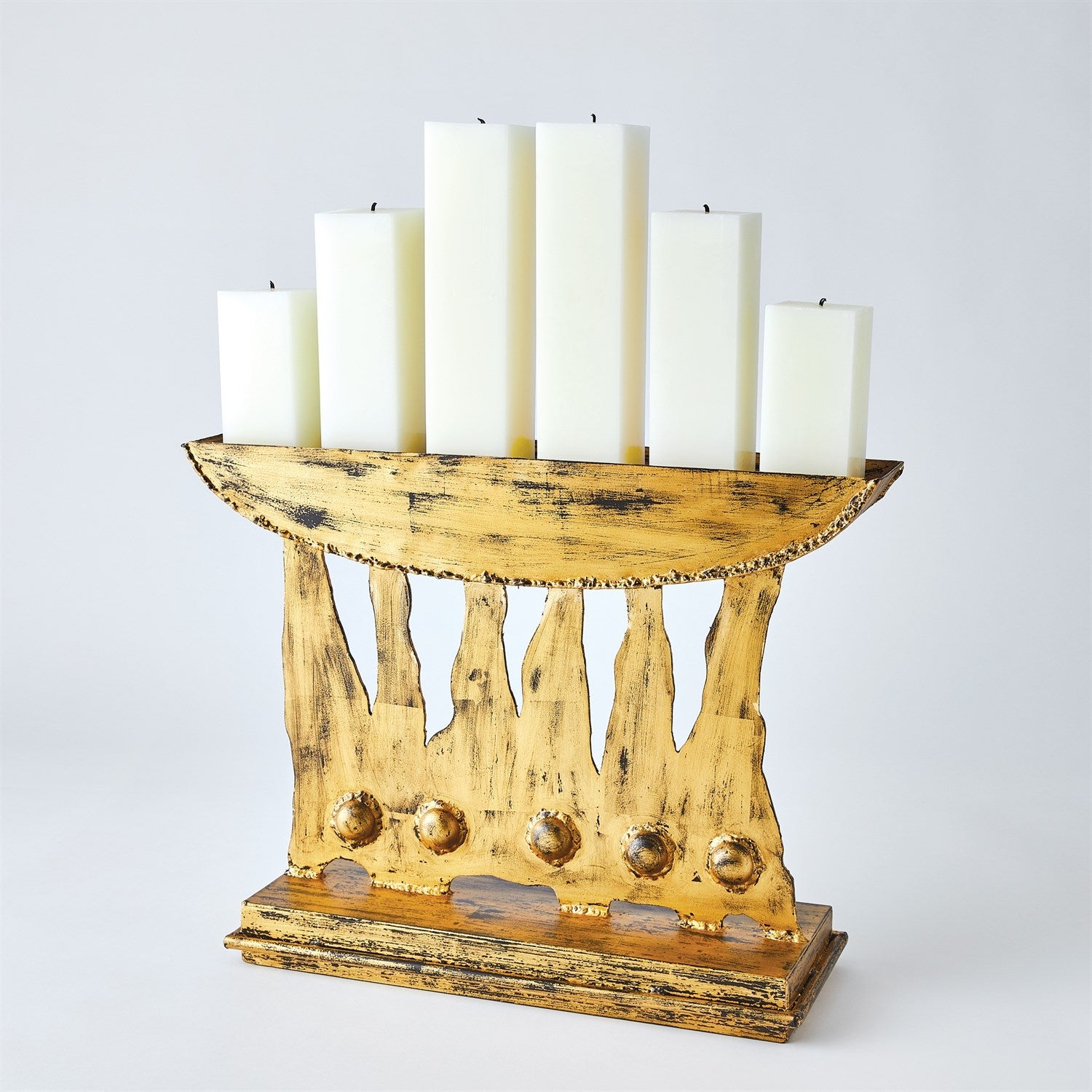 - Gold Leaf Scratched Dust with dry cloth Holds up to six 3" Dia. Square or Round Pillar Candles