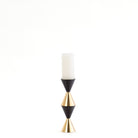 A virtual play on shapes and form, the Italian Diamond Candle Collection of candlesticks are dynamic. The rhythm of the shapes and the contrast of finishes are artfully executed. These command attention especially with an illuminating candle atop. Finished in polished brass and satin bronze. Available in 3 sizes. Each sold separately.