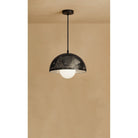 Taj Bell Pendant is designed in the USA and handmade in Morocco. The metal lamp is embellished with holes to allow light to shine through its modern shape. The timeless half-dome shape is made from punched metal and pierced designs. The semi-sphere shape is modern with a hint of mid-century. It's handcrafted from brass, copper, or nickel silver. The tiny holes create a stunning shadow pattern on the walls allowing the light to shine through for an amazing exotic style. Full range dimming.