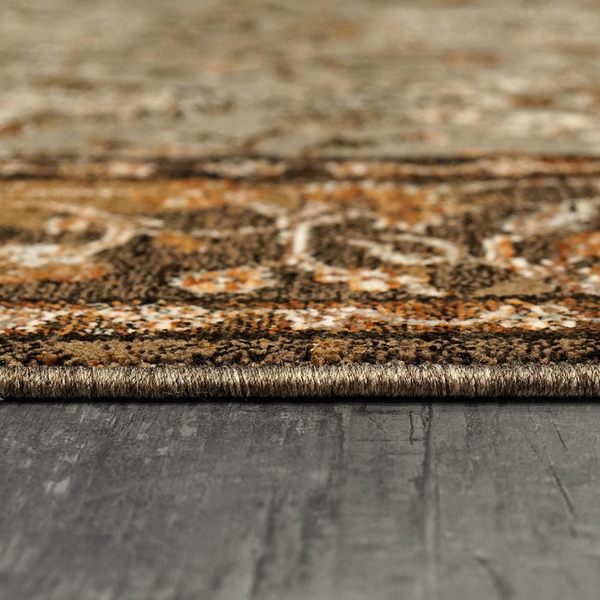 Cullen 5705 Taupe Brown rug from our exquisite collection. Embrace timeless elegance with our Cullen series, featuring traditional designs that blend harmoniously with various decor themes. The subtle tones of beige, brown, and blue ensure seamless integration into any space. What sets the Cullen rugs apart is their fascinating ability to shift hues under different lighting conditions, creating a one-of-a-kind aesthetic for each piece.