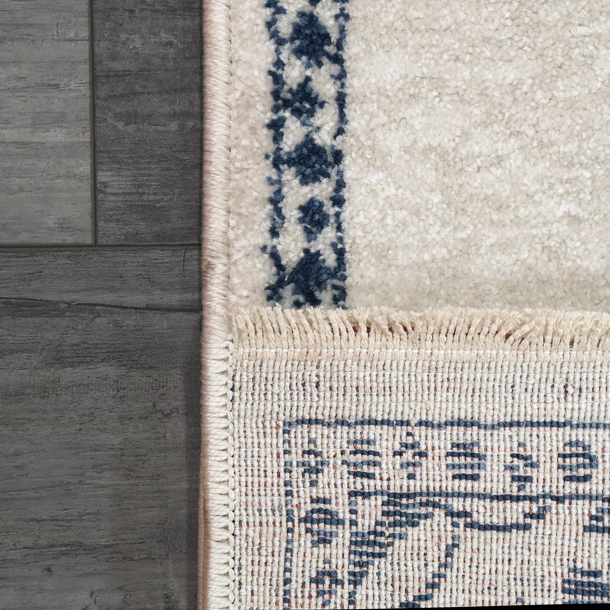 exquisite Hera 3302 Ivory Blue rug from our stunning Hera Collection. This collection effortlessly blends neutral greys and ivories with pops of vibrant red and blue hues, creating a versatile color palette that complements various decor styles. The modern patterns featured in the Hera rugs add a touch of contemporary flair to any space they adorn.