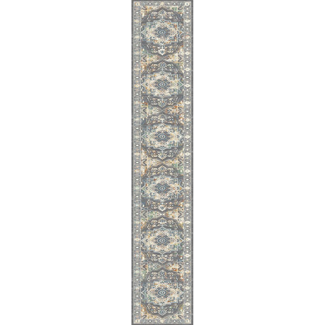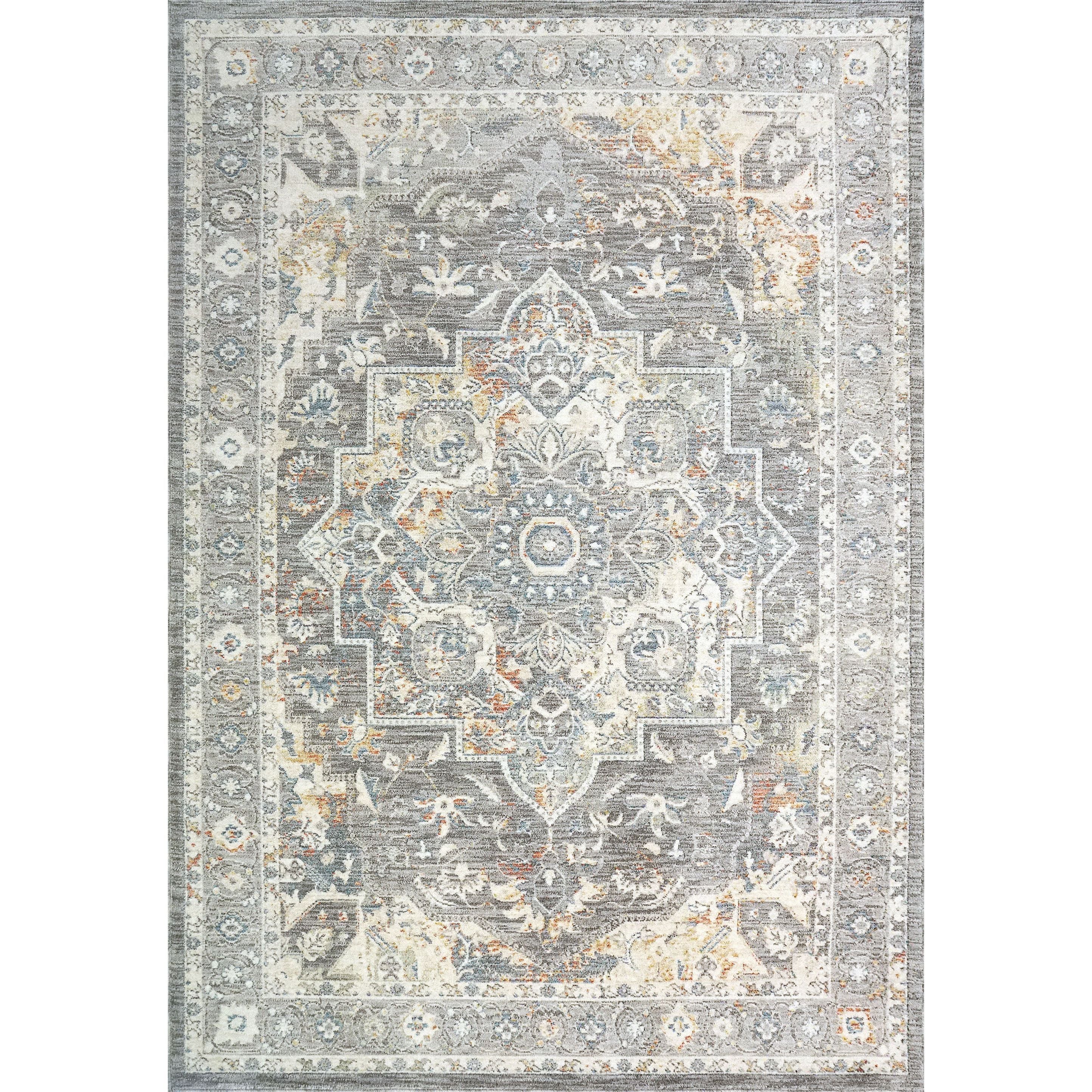 Jupiter 3103 Grey Multi, a classic and elegant rug that combines timeless Persian designs with a modern touch. Crafted from high-quality polyester, Jupiter exudes durability while offering a soft and smooth texture. The innovative space-dying technique creates a striking color gradient, transitioning from neutral tones like beige and grey to luxurious shades of copper and gold.