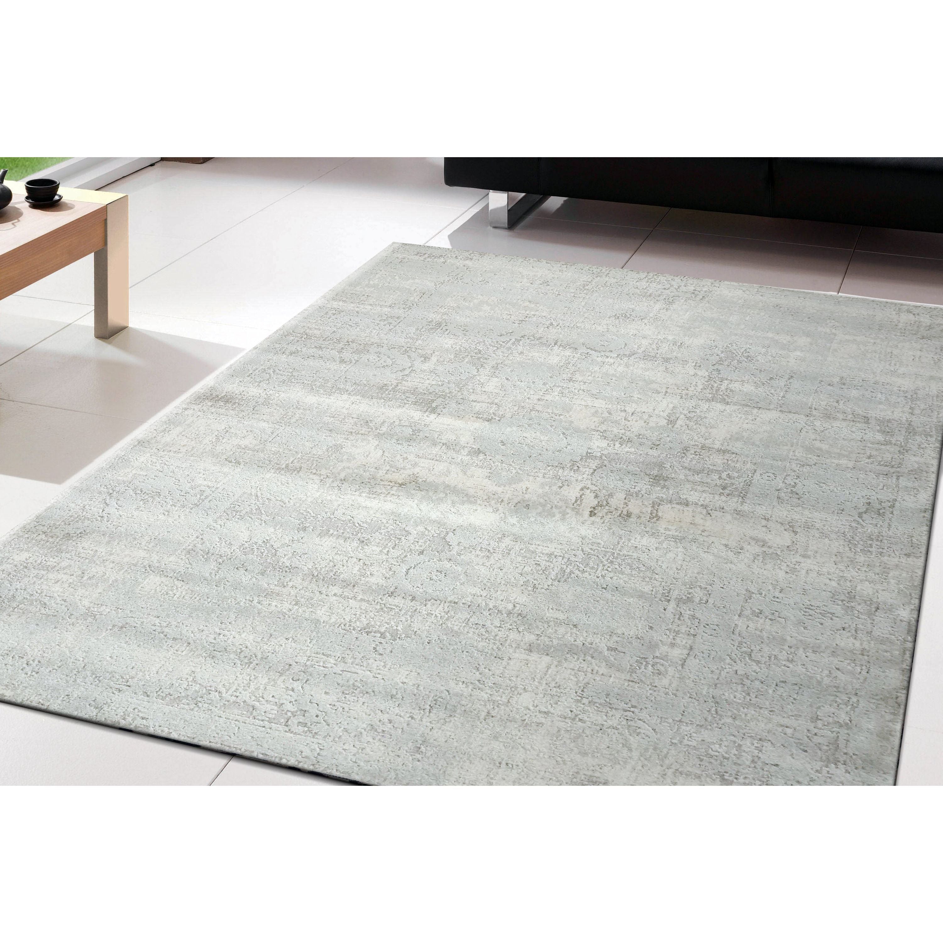 elegant Castilla 3530 Cream Silver rug, a sophisticated blend of shrink polyester and polypropylene crafted with precision in Turkey. Its dense fibers and shimmering sheen offer a luxurious touch and a radiant visual appeal. This machine-made rug features soft beiges, greys, and blues that effortlessly enhance neutral decor settings. The unique sheen of the rug's surface creates dynamic reflections, lending a versatile charm that changes with varying viewing angles.