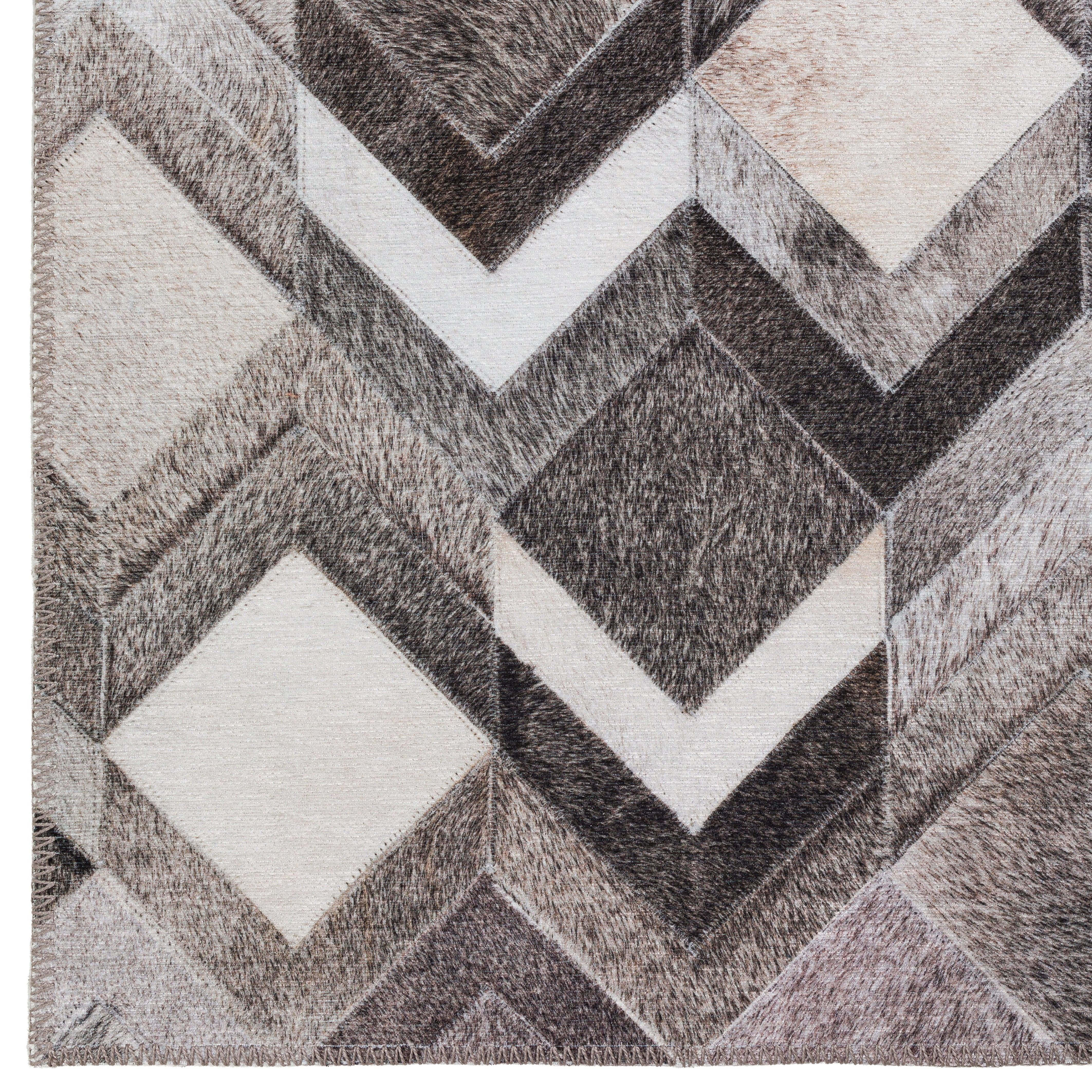 Durango SS5 Flannel, a stunning faux hide patchwork rug collection that will impress your guests with its realistic details. This stylish rug showcases neutral colors with captivating gradient movement in various mosaic shapes and patterns. Crafted with an ultra-soft and thin pile made of 100% polyester, each rug is equipped with a non-skid backing for added safety. Meticulously made in the USA using domestic processing on an imported substrate, these rugs are UV Stabilized for both indoor and outdoor use.