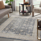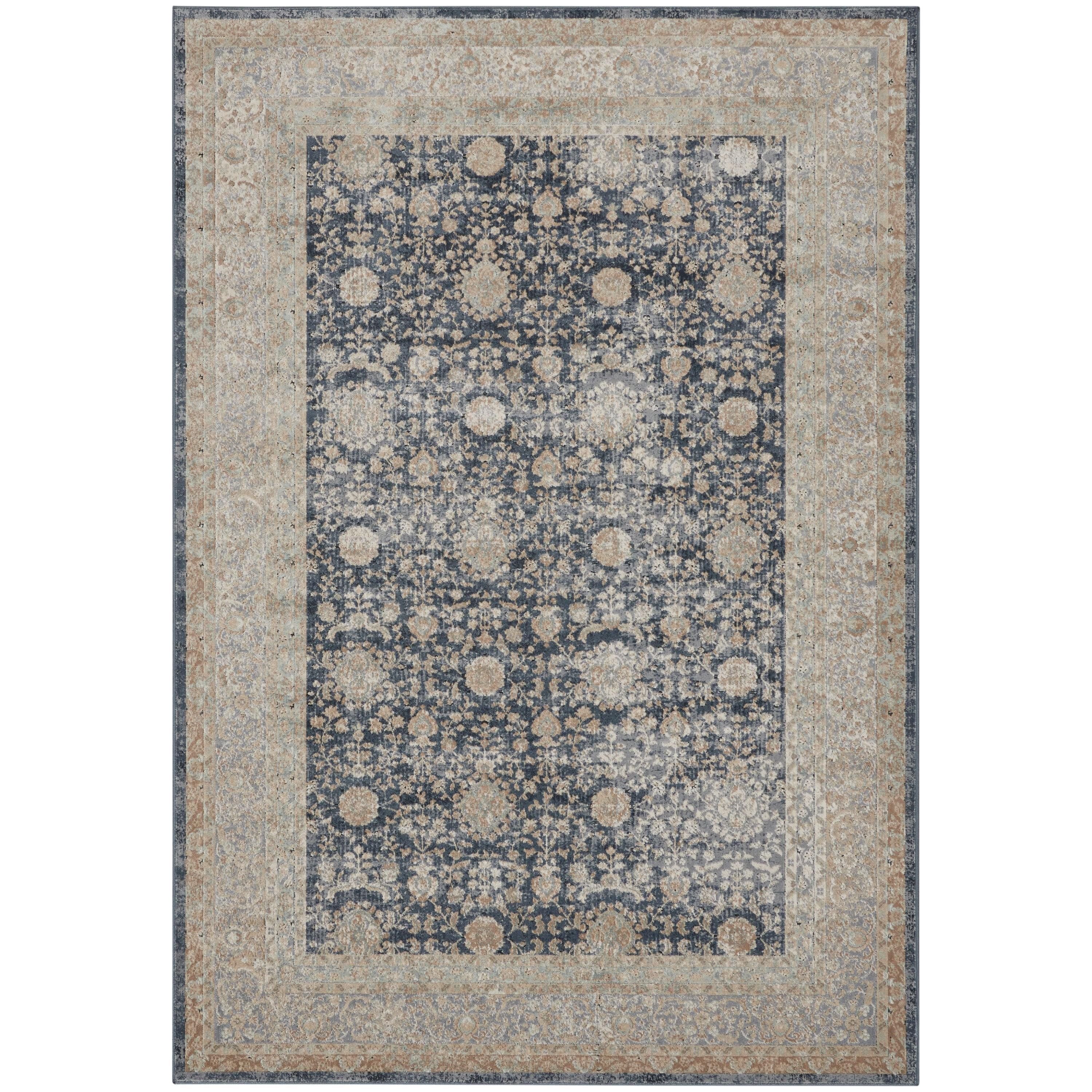 KI25 Malta MAI07 Navy area rug, a captivating piece in shades of navy, gold, cream, and crimson. The intricate old world floral and botanical design exudes an enchanting charm that is hard to resist. Crafted from low-maintenance fibers with a textured finish, this rug has been delicately washed to achieve a stunning antique effect.
