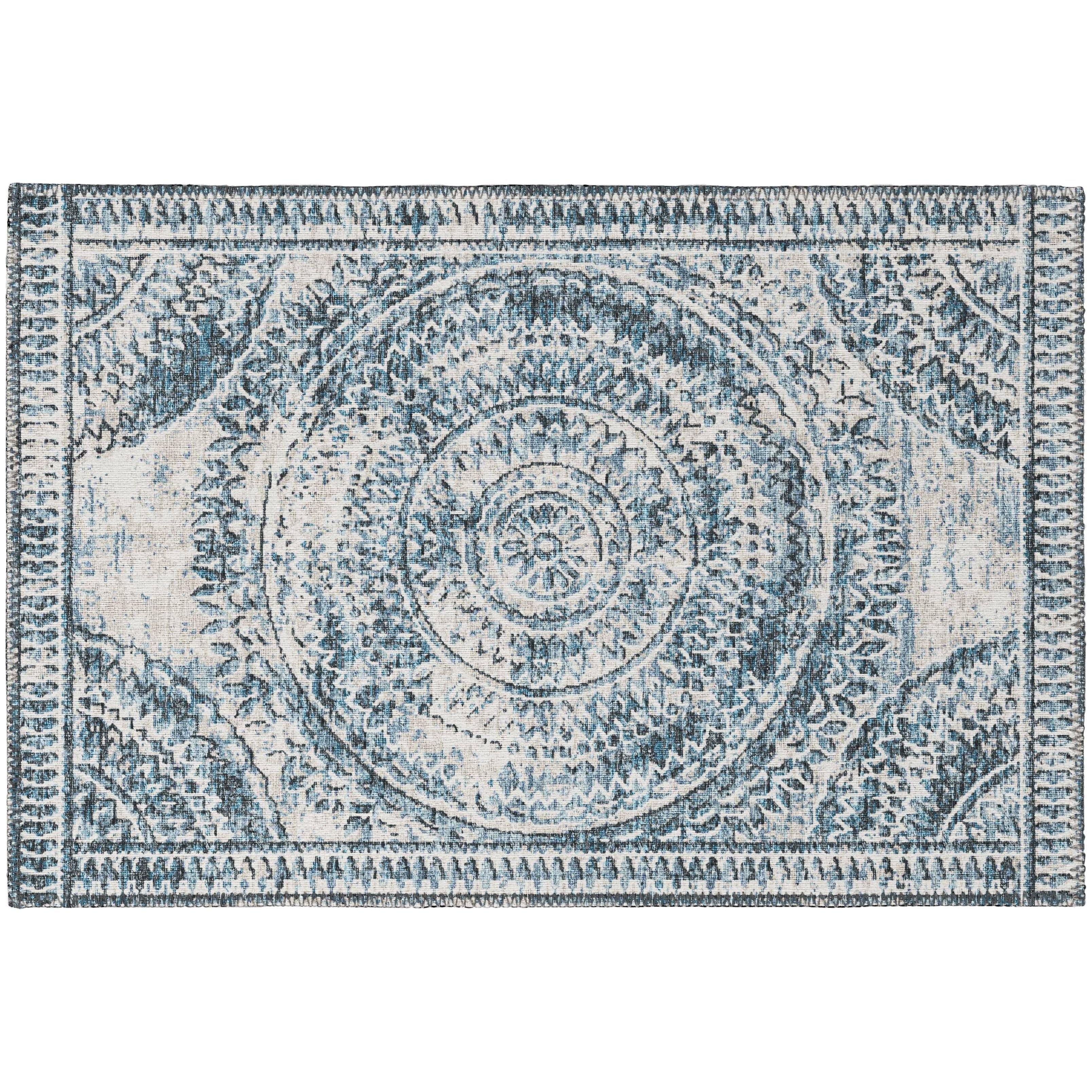 Sedona SN7 Indigo rug from our captivating Sedona collection! This rug is a stunning fusion of global design influences from around the world. Crafted with an ultra-soft and thin pile made of 100% polyester, each rug features a non-skid backing for added stability. Proudly crafted in the USA with domestic processing on an imported substrate, these rugs are perfect for both indoor and outdoor use, thanks to their UV stabilization.