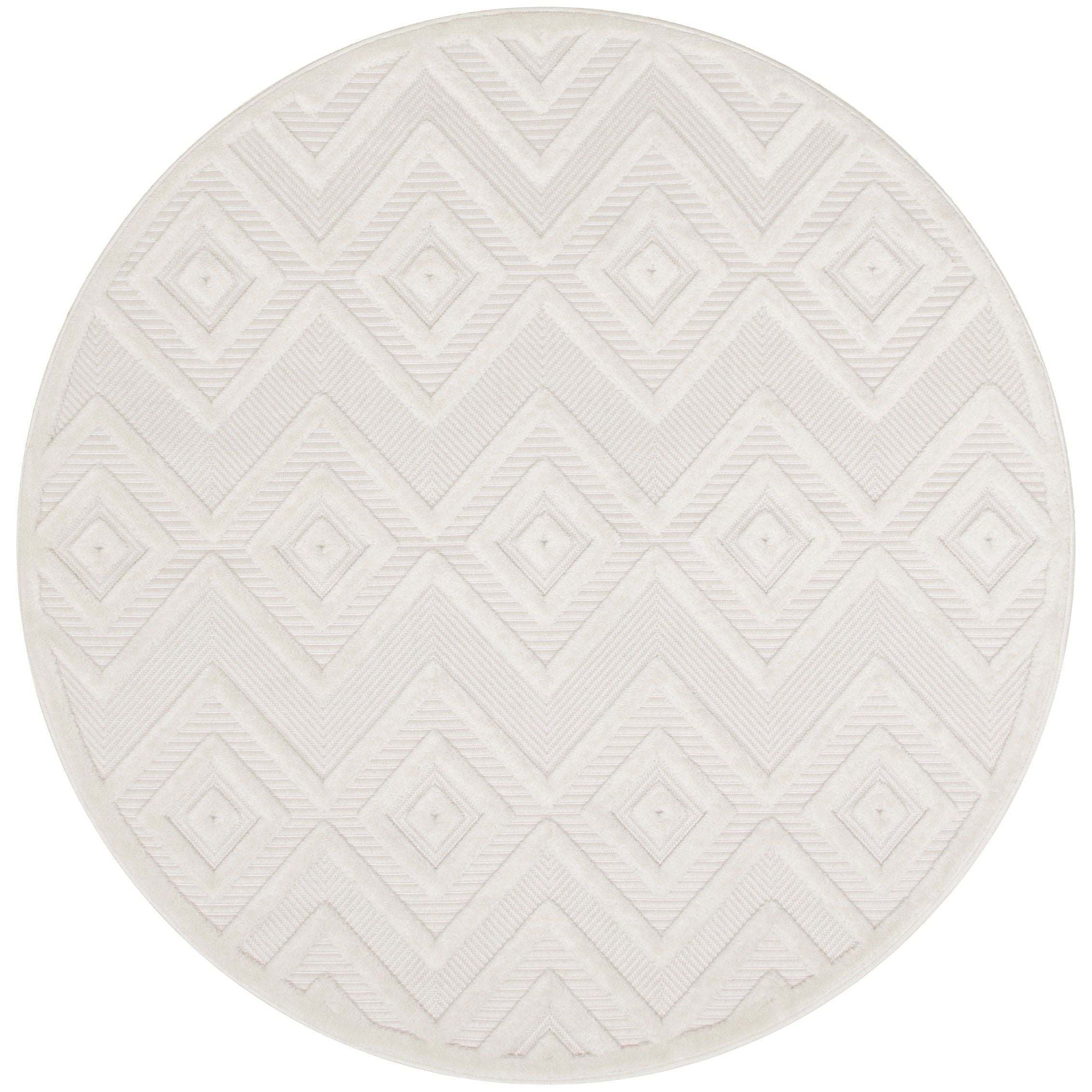 Versatile NRV01 Ivory White rug from the Nourison Versatile Collection, a stunning addition to any indoor or outdoor area. The intricate raised diamond design adds a touch of elegance to your space, creating a modern and inviting atmosphere. Crafted from durable and easy-to-clean fibers, this machine-made rug is perfect for high-traffic areas in your home and can withstand all seasons outdoors.