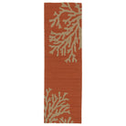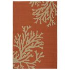 Grant I O GD01 Bough Out area rug, perfect for both indoor and outdoor spaces. Embrace a modern aesthetic with coastal vibes as neutral taupe coral branches pop against a vibrant orange background. This rug adds a touch of beachy charm to any room, while its looped pile offers a unique texture that is both stylish and durable.
