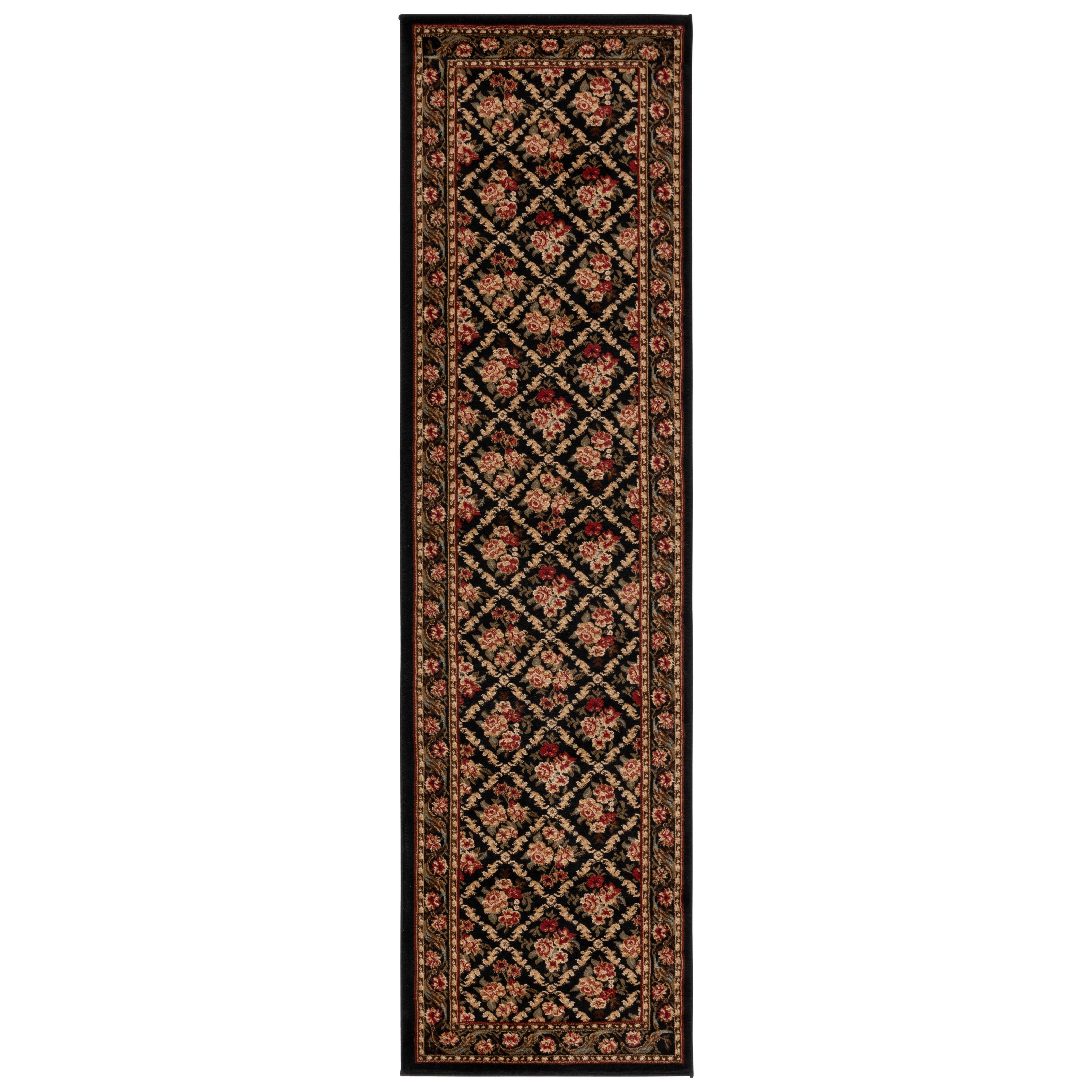 Lyndhurst LNH556 9090 from Safavieh, a stunning addition to any room. This exquisite rug combines the timeless charm of traditional Persian and European designs with the modern convenience of polypropylene material. Featuring intricate florals, vines, and latticework patterns, these rugs effortlessly infuse warmth and vitality into your living space.