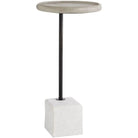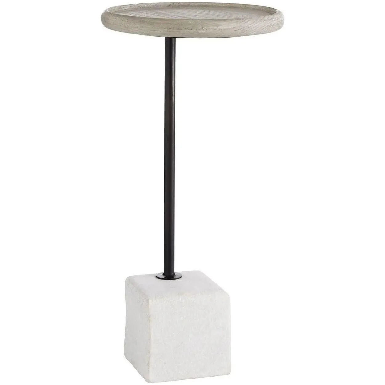 A perfect piece for impromptu parties this accent table is simple in form and functional by design. A smooth solid oak top in a smoke finish is supported by a bronze iron pillar and is showcased on a sandblasted white marble base. A cantilevered lip surrounds the top`s edge making it a great drinks table that can easily overlap a chair or sofa. Finish and marble may vary.