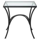 Gracefully Arched Hand Forged Metal Finished In Sleek Satin Black. Top Is Clear Beveled Tempered Glass.
