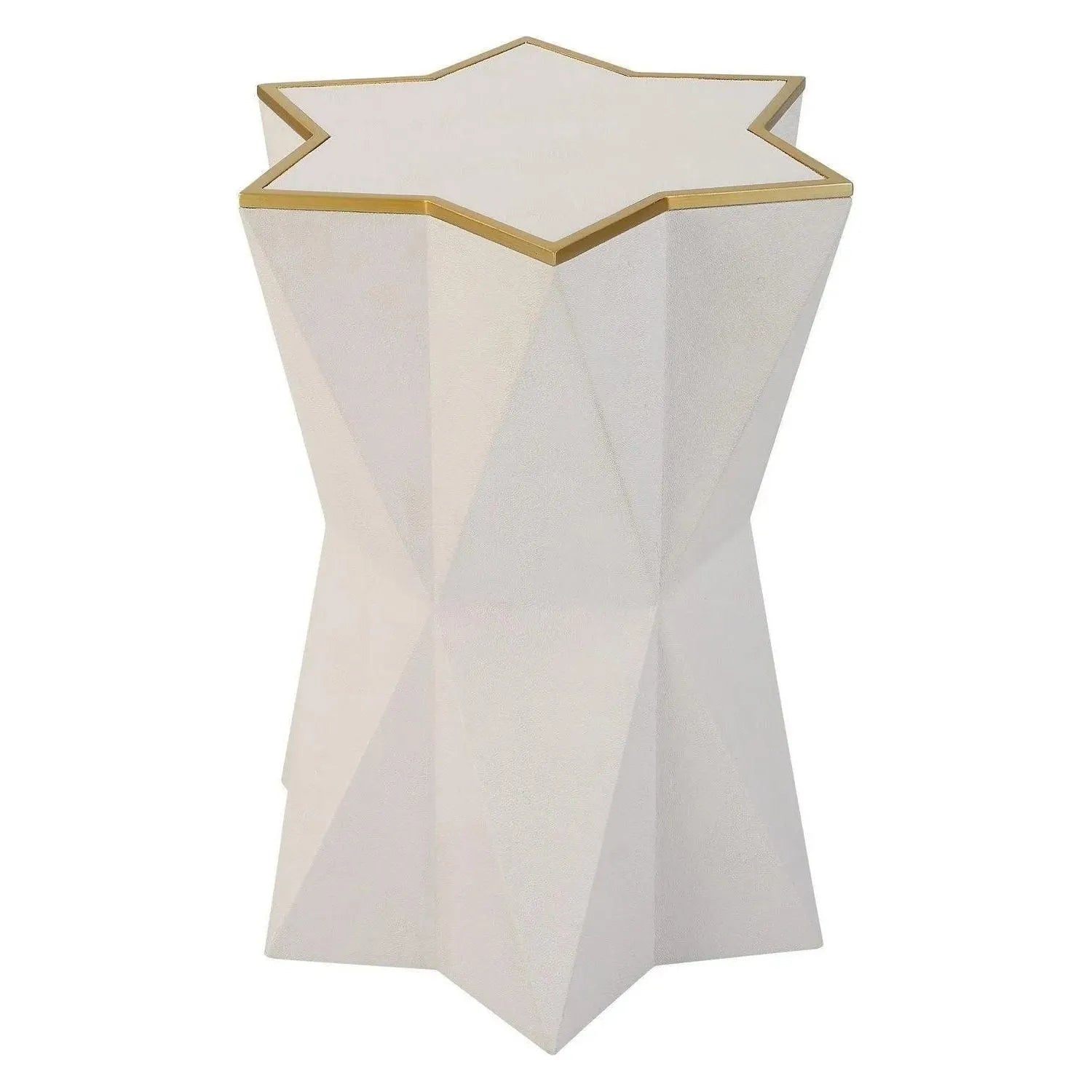 Unique Star Shaped Accent Table Features A Charcoal Gray Faux Shagreen Wrap, Accented With A Hand Applied Gold Leaf Trim.