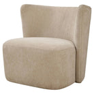 Subtly Modern With A Unique Wrap Around Back With Inverse Angles, Atop A Hidden Swivel Base. Upholstered In A Finely Textured, Cleanable Polyester In Sand. Seat Height Is 17".