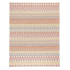 Loom knotted cotton flatweave rug features unique and pretty Fairisle motifs woven in a Birdseye technique, which beautifully mutes and washes down the lively palette of Orange, Leaf, Denim, Fuchsia, Red and Soft Pink. Enhanced durability is an added bonus delivered by its special woven structure.