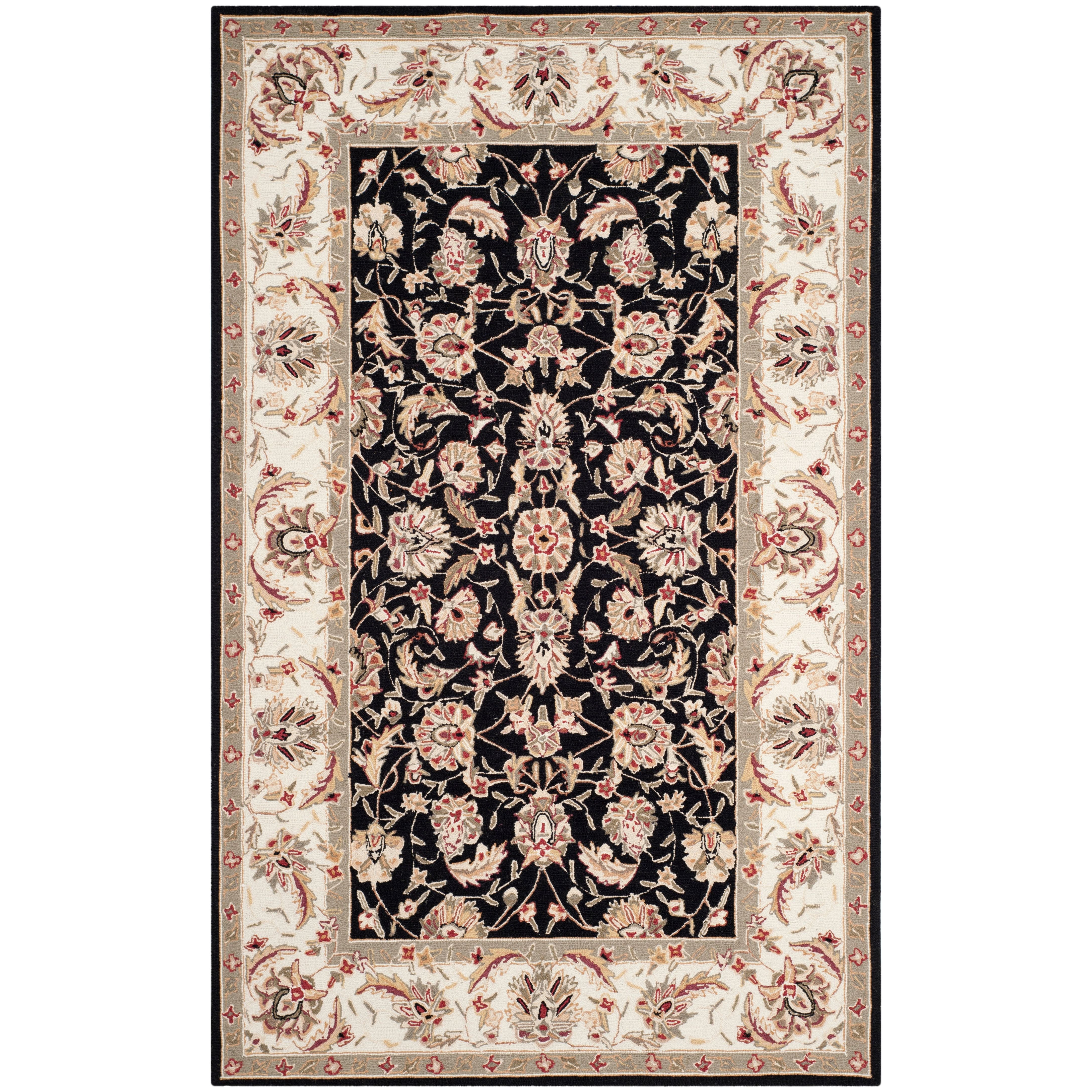 elegant Chelsea HK78A rug, crafted with a 100% pure virgin wool pile that is hand-hooked onto a sturdy cotton backing. The design is inspired by American Country and turn-of-the-century European styles, adding a touch of timeless charm to any space. Each piece from this collection is meticulously handmade in China, ensuring both quality and authenticity exclusively for Safavieh.