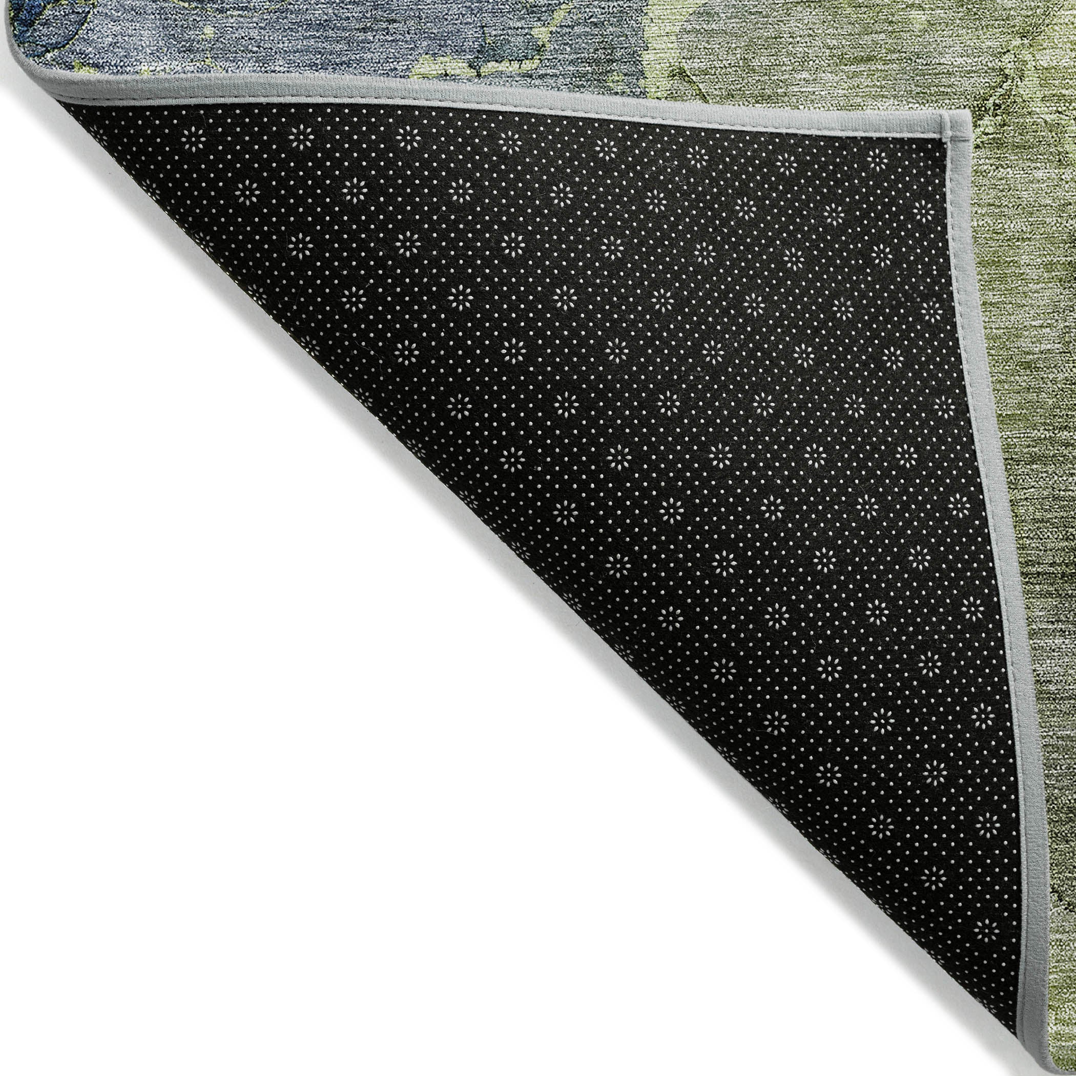 "First off, I love this rug .. the colours and the texture of the rug turned out to be exactly what I was hoping for - a very neutral-looking moss green and ivory background with a few tiny pale blue accents. Love the look!"