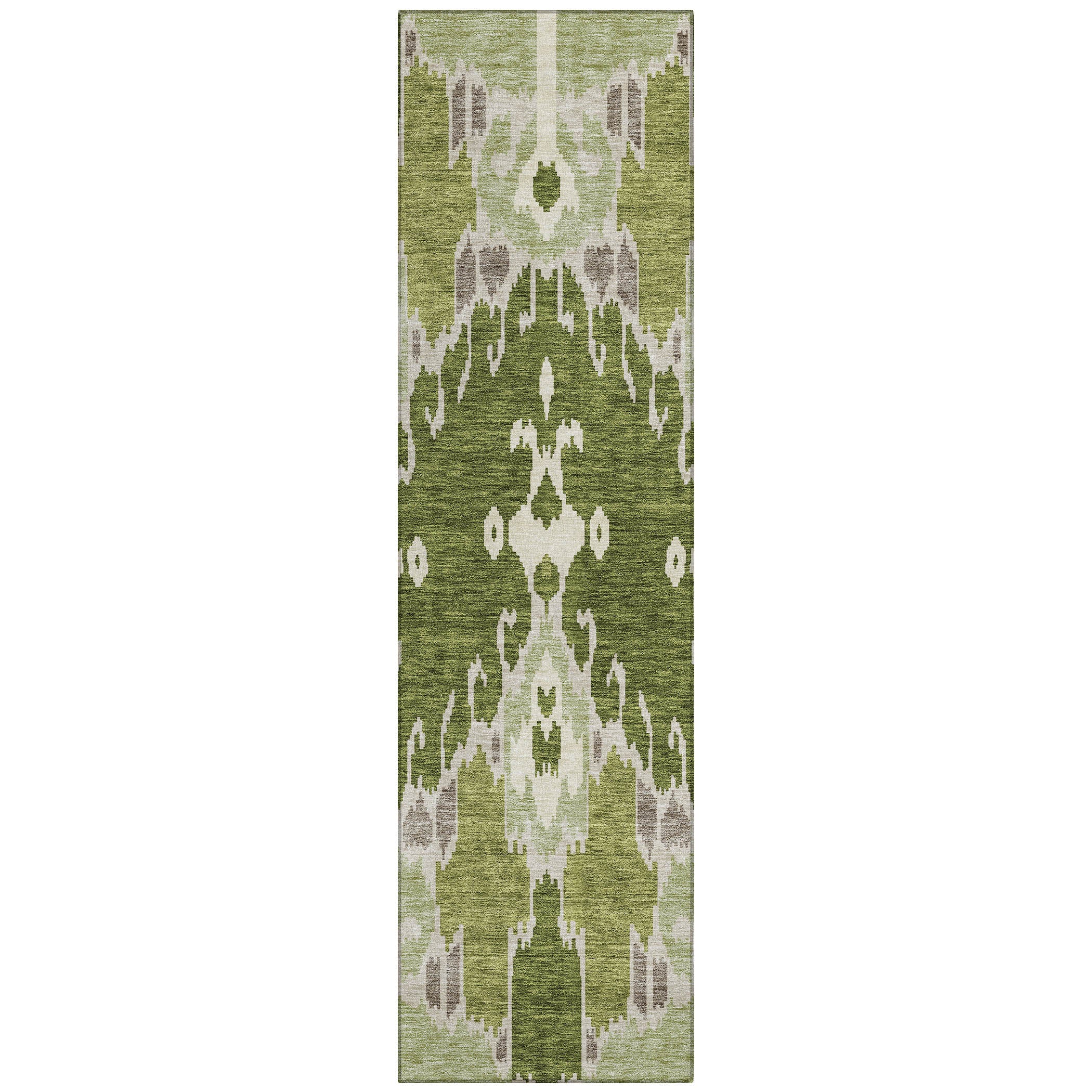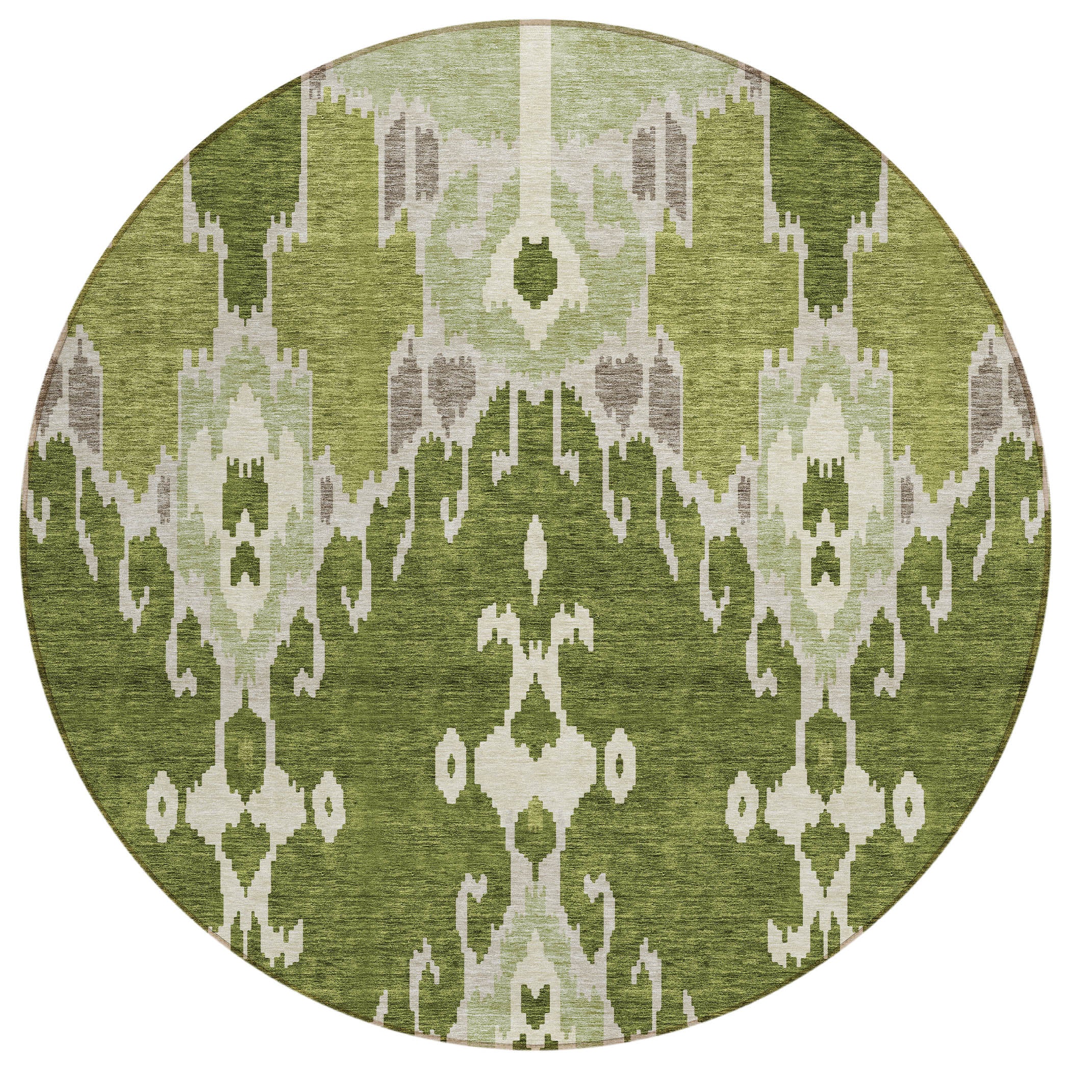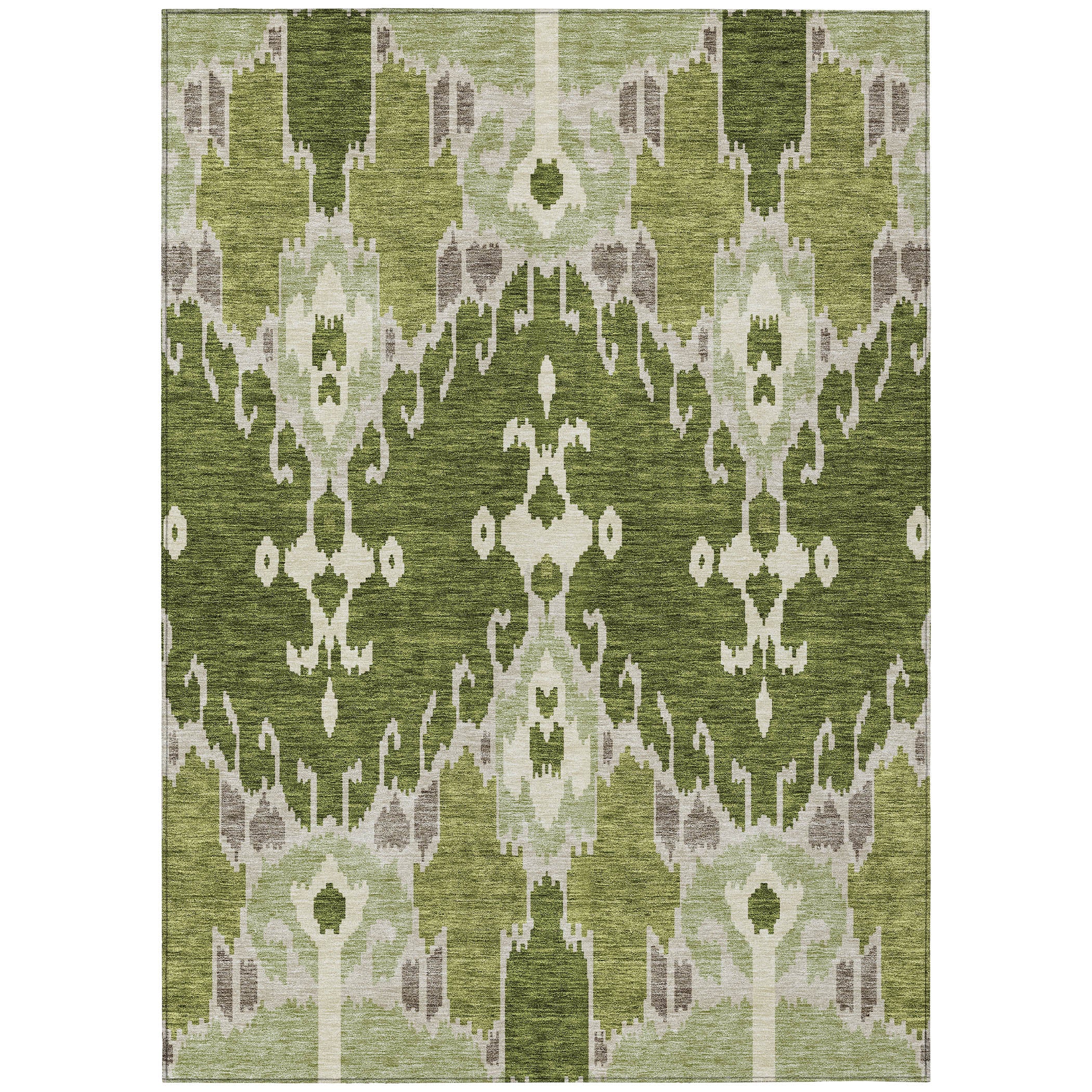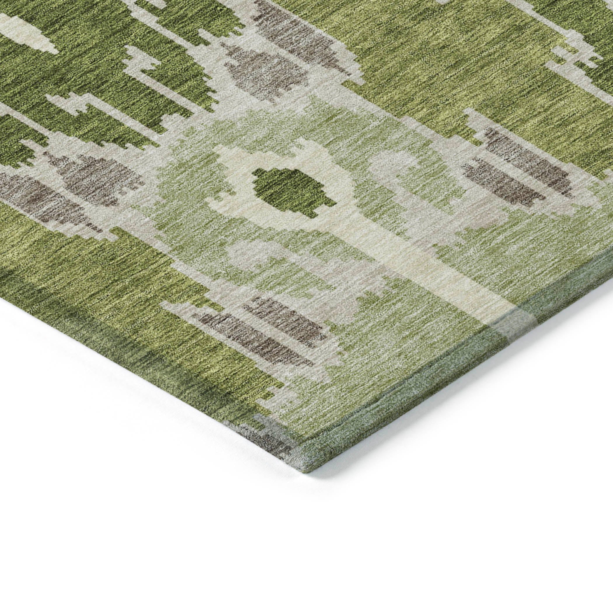 Chantille ACN748 Olive rug, a modern twist on the timeless Ikat pattern. This rug effortlessly blends traditional motifs with contemporary style, making it a striking addition to any room. Its unique design promises to create a visual impact that complements transitional tastes.