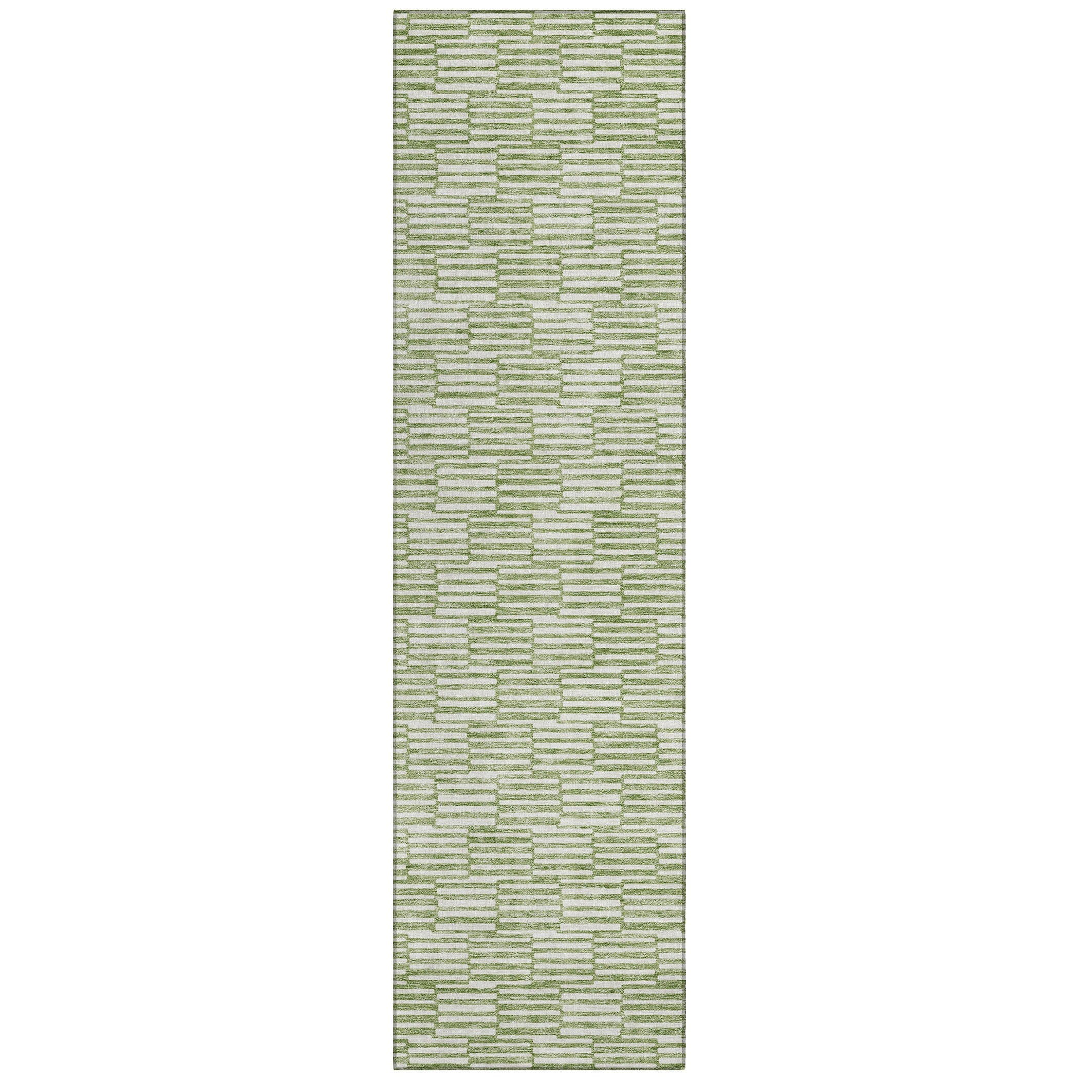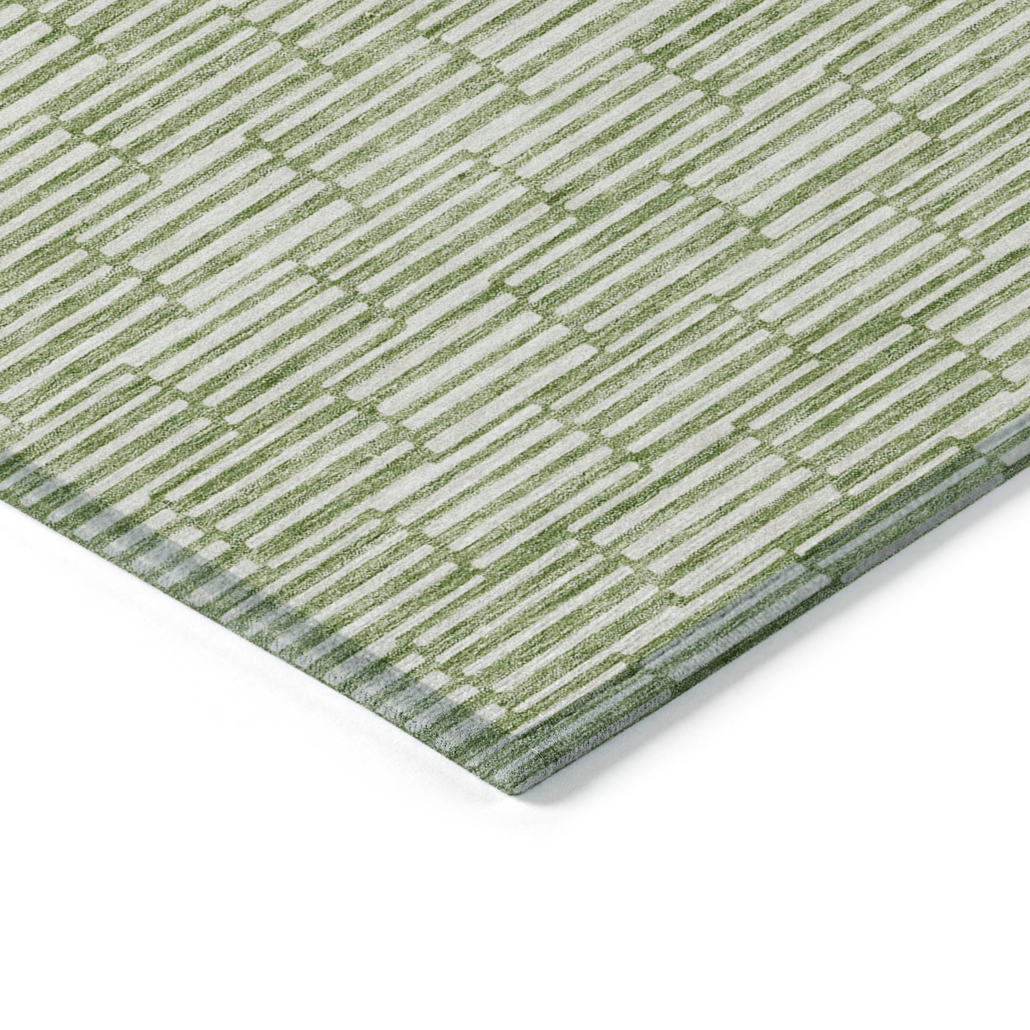 Chantille ACN918 Green area rug, a perfect blend of elegance and modern design. This rug features small rectangles that create a captivating horizontal pattern, seamlessly fusing transitional style with linear sophistication.