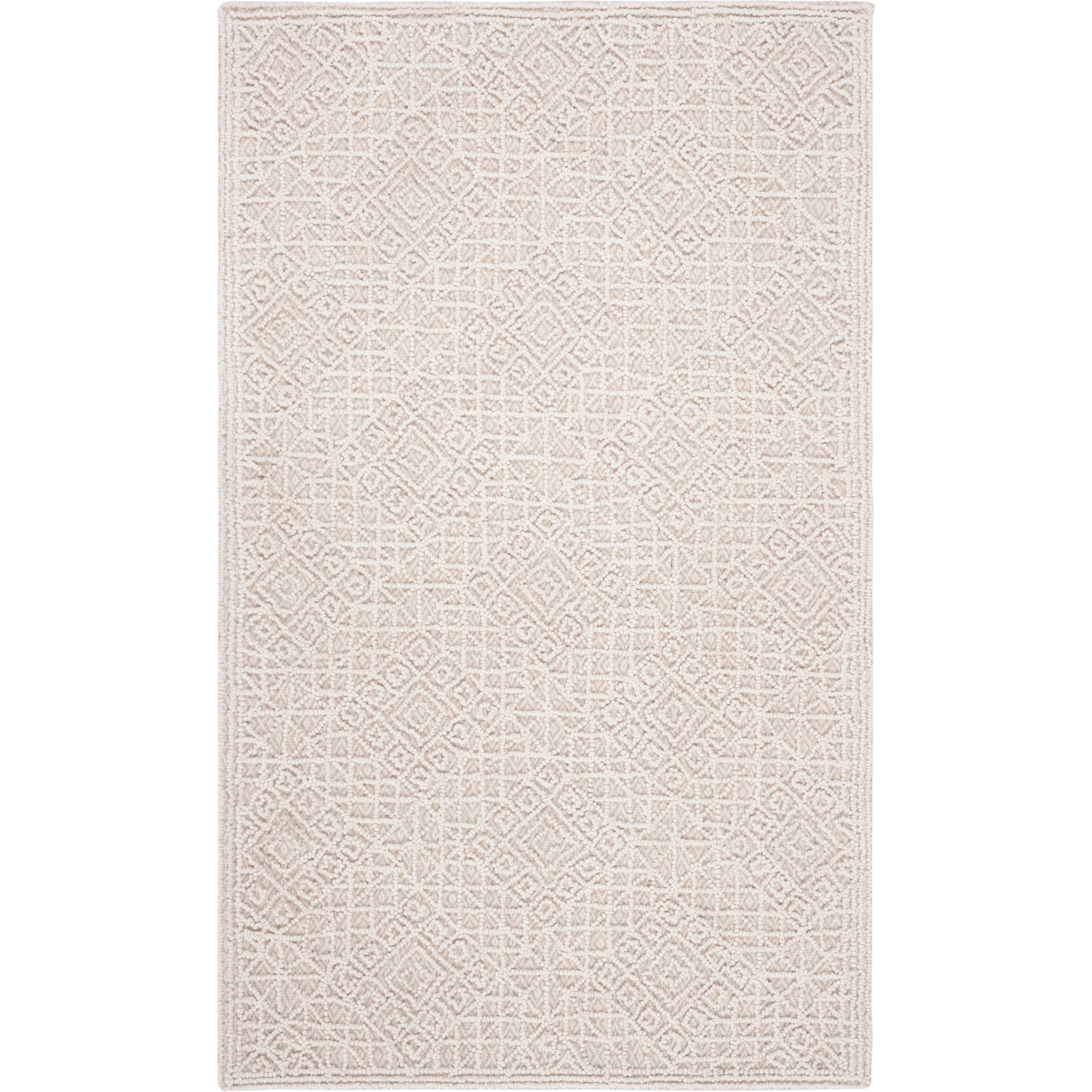Elevate your home decor with the Trace TRC255B Light Beige area rug from SAFAVIEH. This luxurious piece features intricate raised patterns and textures that add an elegant touch to any room. The understated color palette complements the all-over looped designs, creating a regal look against the solid colored field.