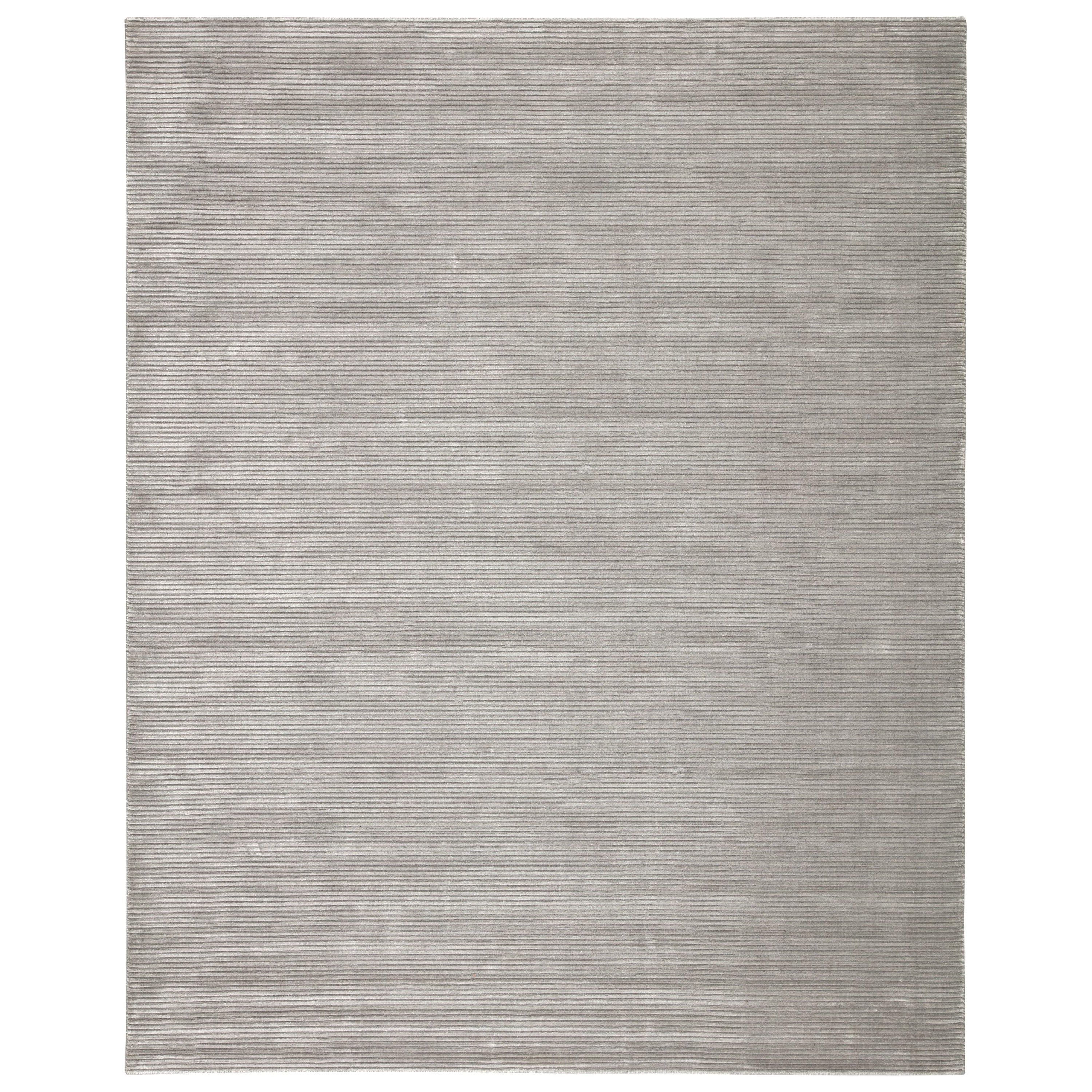 Basis BI02 hand-loomed area rug - a stunning addition to any modern home decor. Crafted with a sleek design, this rug features a beautiful tone-on-tone gray and silver colorway. The texture-rich stripes create a unique high-low ridged feel that adds depth and character to your living space.
