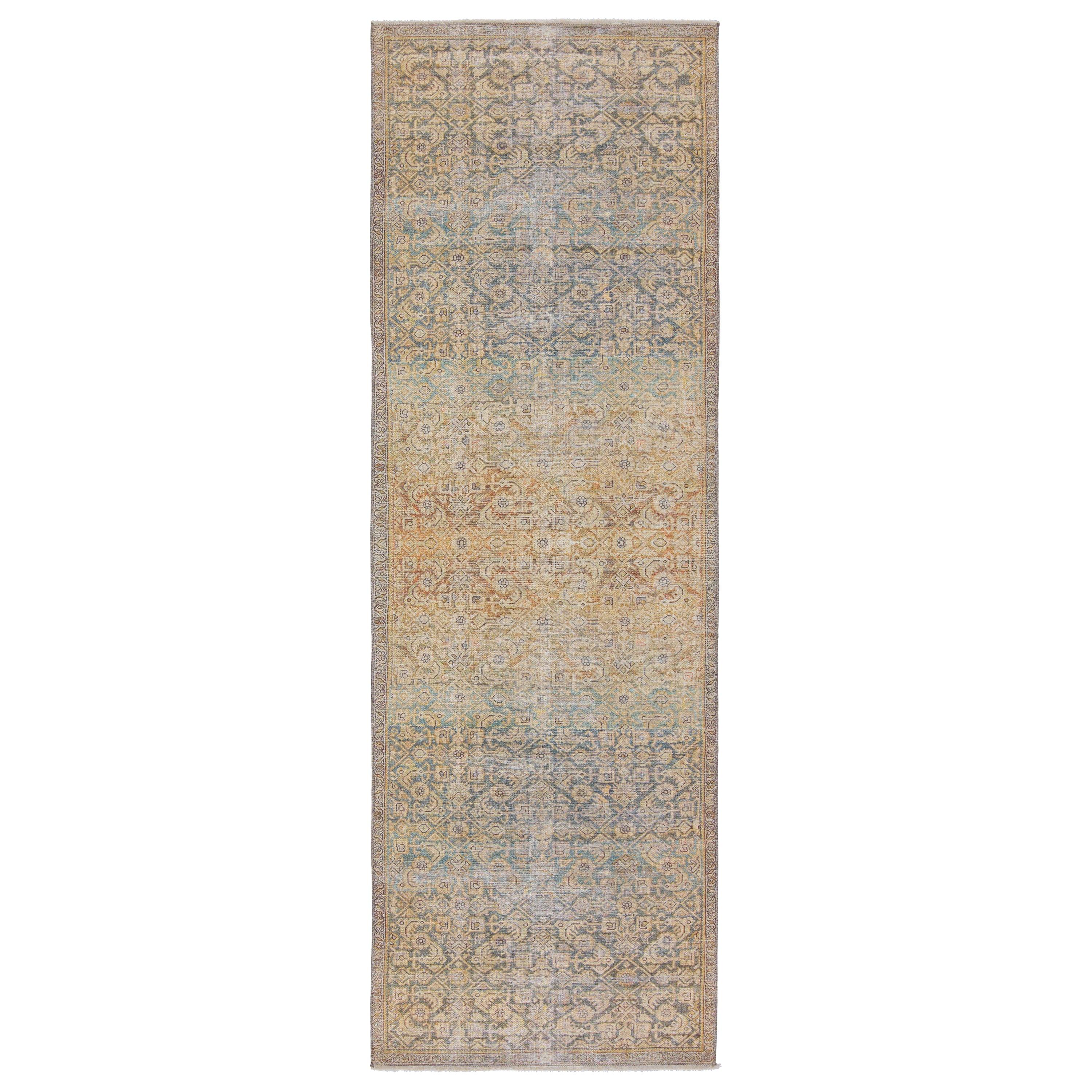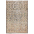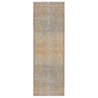 Boheme BOH13 Atkins area rug from the exquisite Boheme collection. This stunning piece effortlessly blends vintage charm with intricate worldly designs, enhanced by a classic distressed finish. The Atkins rug features a beautifully antiqued trellis and border pattern in a captivating palette of green, gold, and blue hues.