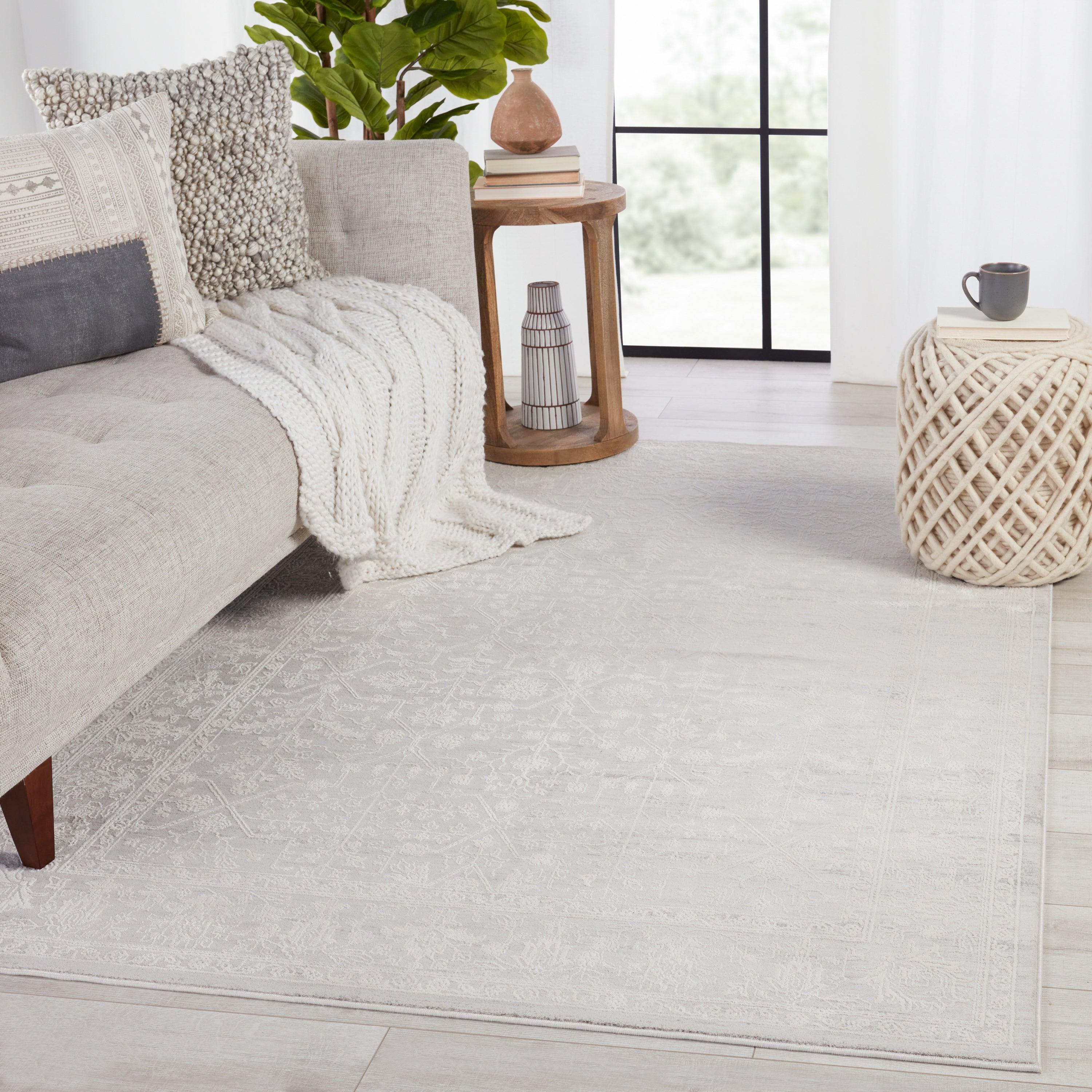 Cirque CIQ41 Riella, a captivating addition to your space that effortlessly combines modern charm with traditional Oriental influences. The Riella rug showcases a graceful floral medallion design in subtle tones, boasting exquisite depth and dimension. Its ivory and gray color palette offers a versatile foundation for any room, enhancing its elegance. Crafted from a blend of viscose and polyester using power-loom technology, this rug is both durable and luxurious.