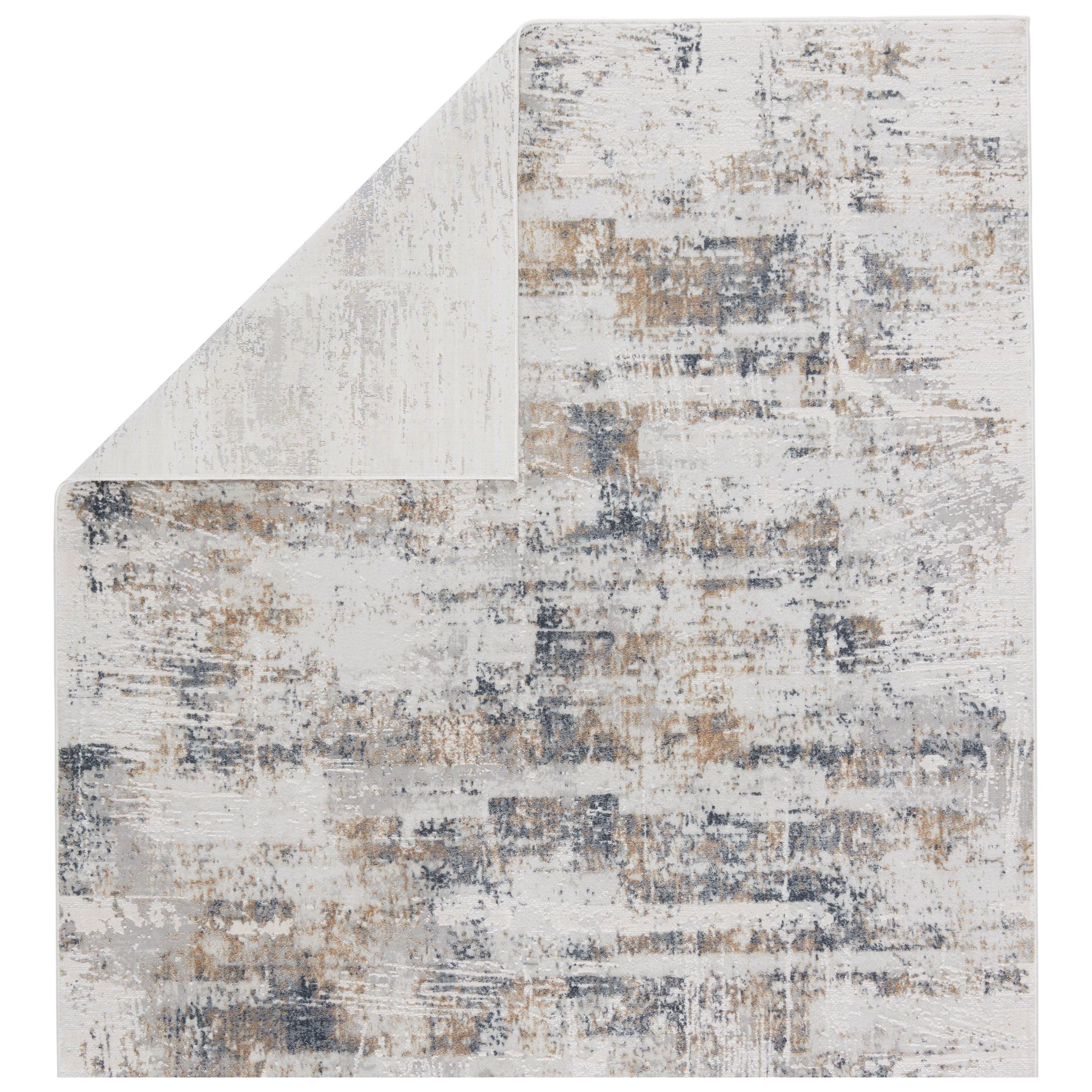 Cirque CIQ42 Gesine rug from our exquisite collection. This rug effortlessly combines modern charm with the intricate elegance of Oriental motifs. The Gesine design showcases a captivating abstract pattern with mineral-inspired tones, offering a striking visual appeal with its depth and dimension. In shades of gray, gold, and ivory, this power-loomed rug is crafted from viscose and polyester, ensuring durability and a luxurious feel underfoot. Ideal for medium to low-traffic areas like bedrooms, formal dining rooms, or living spaces, the Gesine rug adds a touch of sophistication to any room it graces.