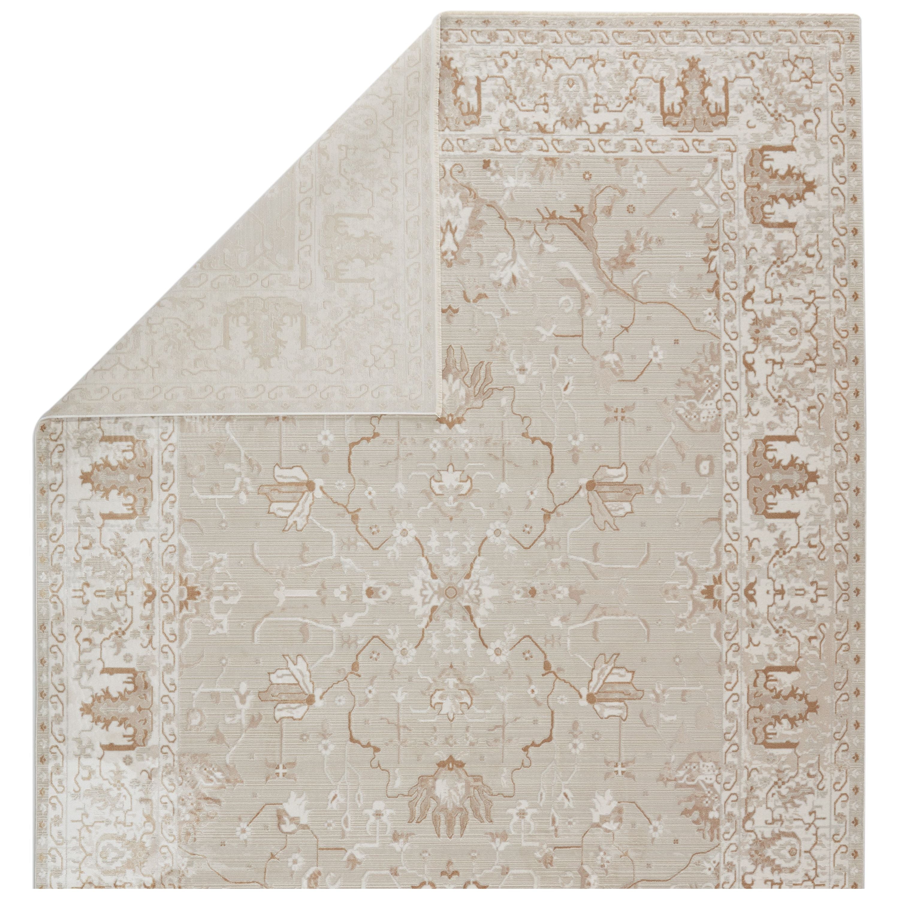 En Blanc EBC09 Dhaval rug from our exquisite collection. Immerse yourself in the timeless elegance of neutral, vintage-inspired patterns that blend Old World charm with a modern luxurious touch. The Dhaval rug features a captivating vine motif in shades of gray, gold, white, and light taupe, adding a sophisticated allure to any space.
