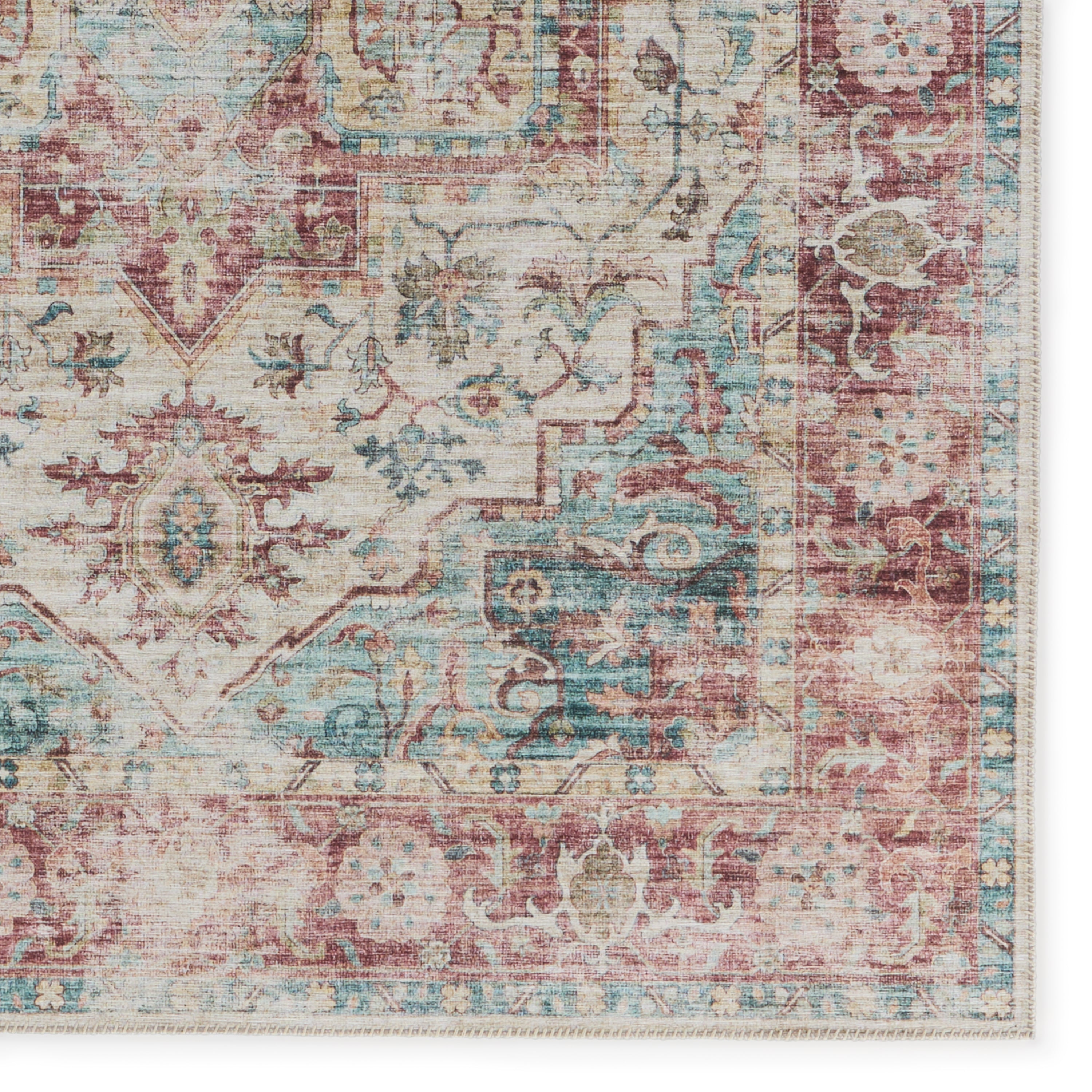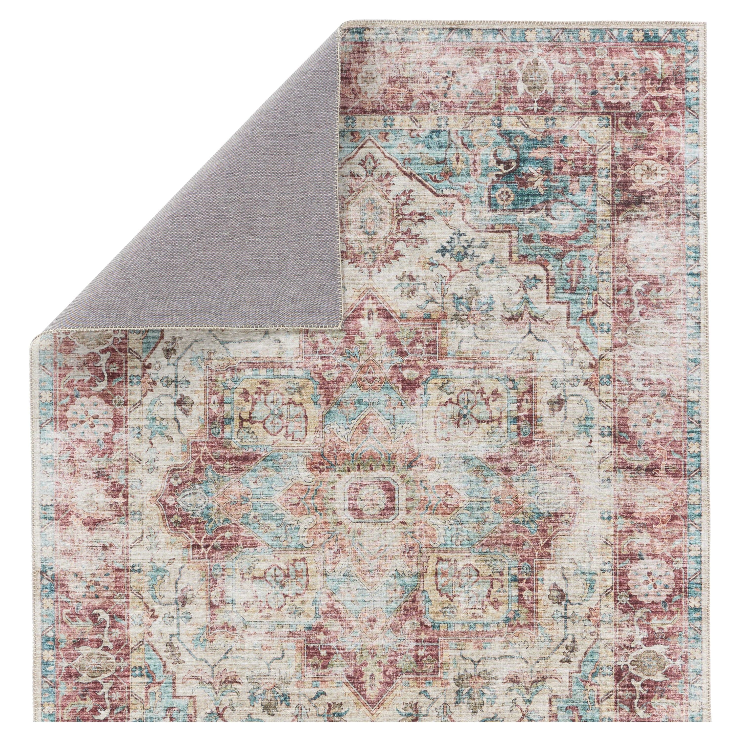 Rich with detail and saturated color, the Kalesi collection makes a statement with updated traditional flair. The Vandran rug showcases a floral medallion in a dark red, teal, beige, and gold colorway that also features hints of green. Crafted of durable polyester, the incredibly high-resolution digital printing gives the impression of a hand-knot quality at an accessible price. This low-profile accent piece can stand up to high traffic areas of the home such as the kitchen, living room, entryways, and halls.