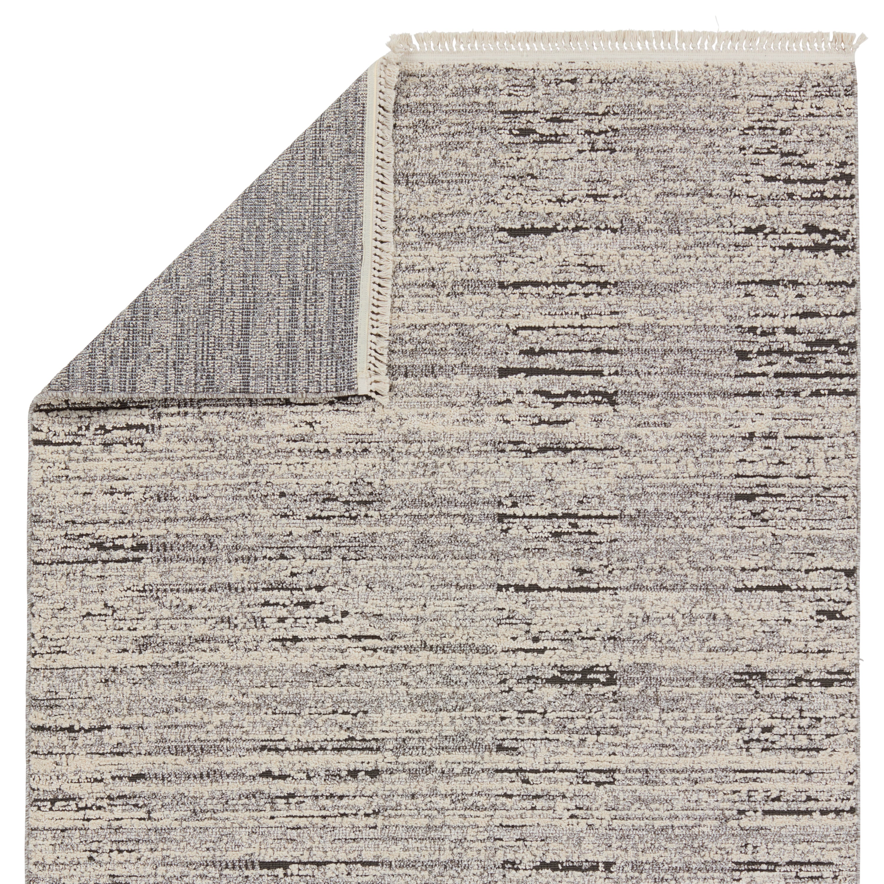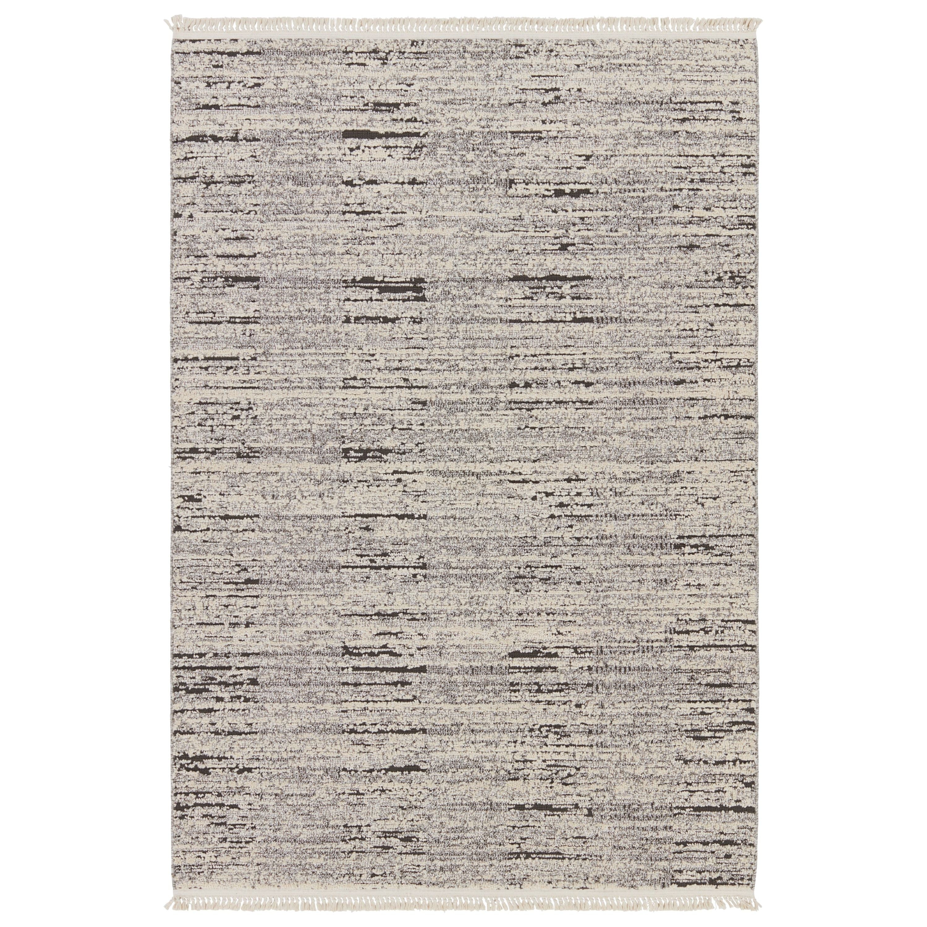 The Lore collection introduces an assortment of modern Moroccan motifs and unique texture that grounds spaces with statement-making style. The Duna area rug features a distressed striped design, cut and looped pile, and cream, fringe. The contrasting neutral tones of gray and cream offer the perfect anchor to contemporary design. This indoor rug thrives in medium and low traffic spaces of the home such as bedrooms, dining areas, formal living rooms, and guest areas.