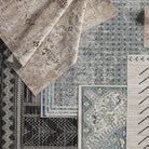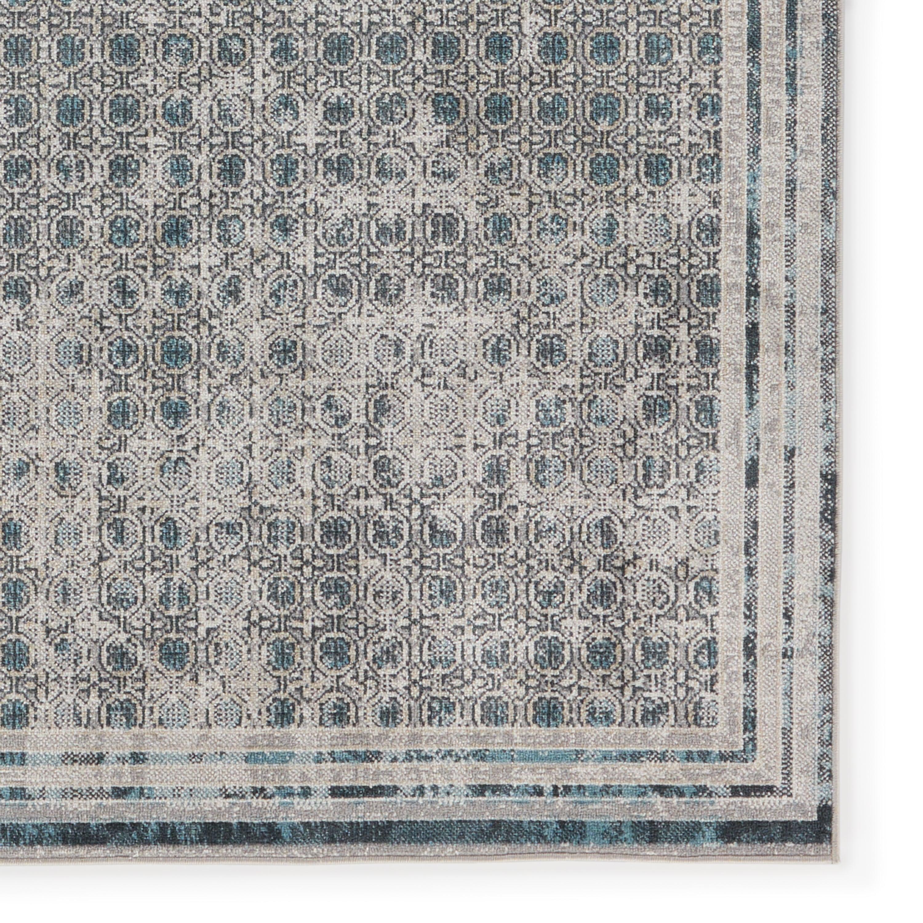 The incredibly chic Nadine collection offers durability and easy-care without compromising one bit on the style. This kid and pet-friendly assortment of rugs features a washable quality and a range of globally inspired designs that anchor rooms with eye-catching appeal. The Allora rug showcases a distressed trellis pattern in blue on a light gray background with hints of gold and cream. The 100% polyester fibers provide a slight sheen and lasting quality that thrives in high traffic areas of the home such as kitchens, bathrooms, living rooms, bedrooms, and halls.