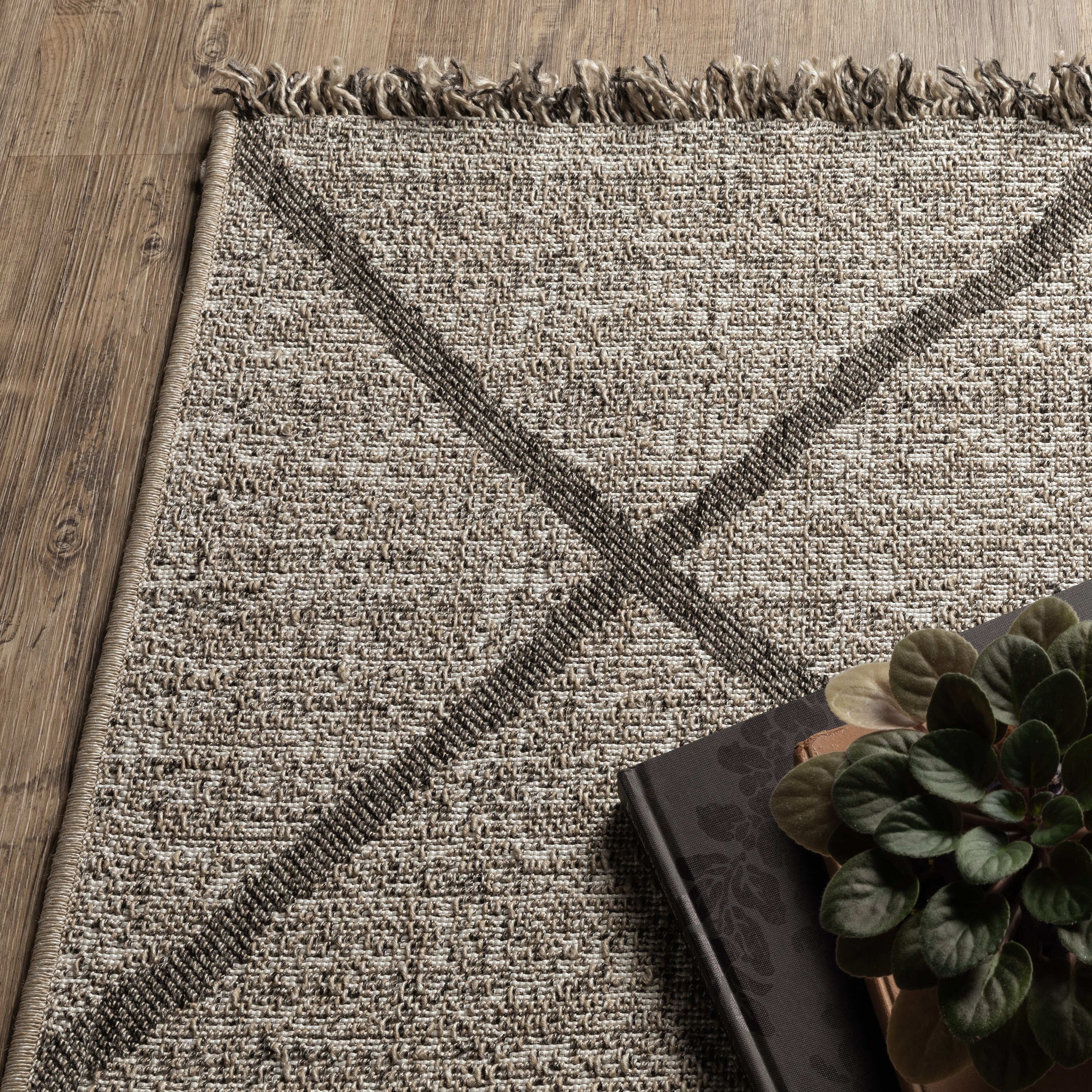 The Gillian collection features subtle patterns and textures with a global feel in tonal colorations of gray, ivory and black. Power-loomed of 100% polypropylene, Gillians flatwoven construction with incorporated fringe, adds visual interest to your floor. Gillian is an ultimate performance collection that is perfect for high-traffic areas and living spaces due to its easy care and family friendly properties.