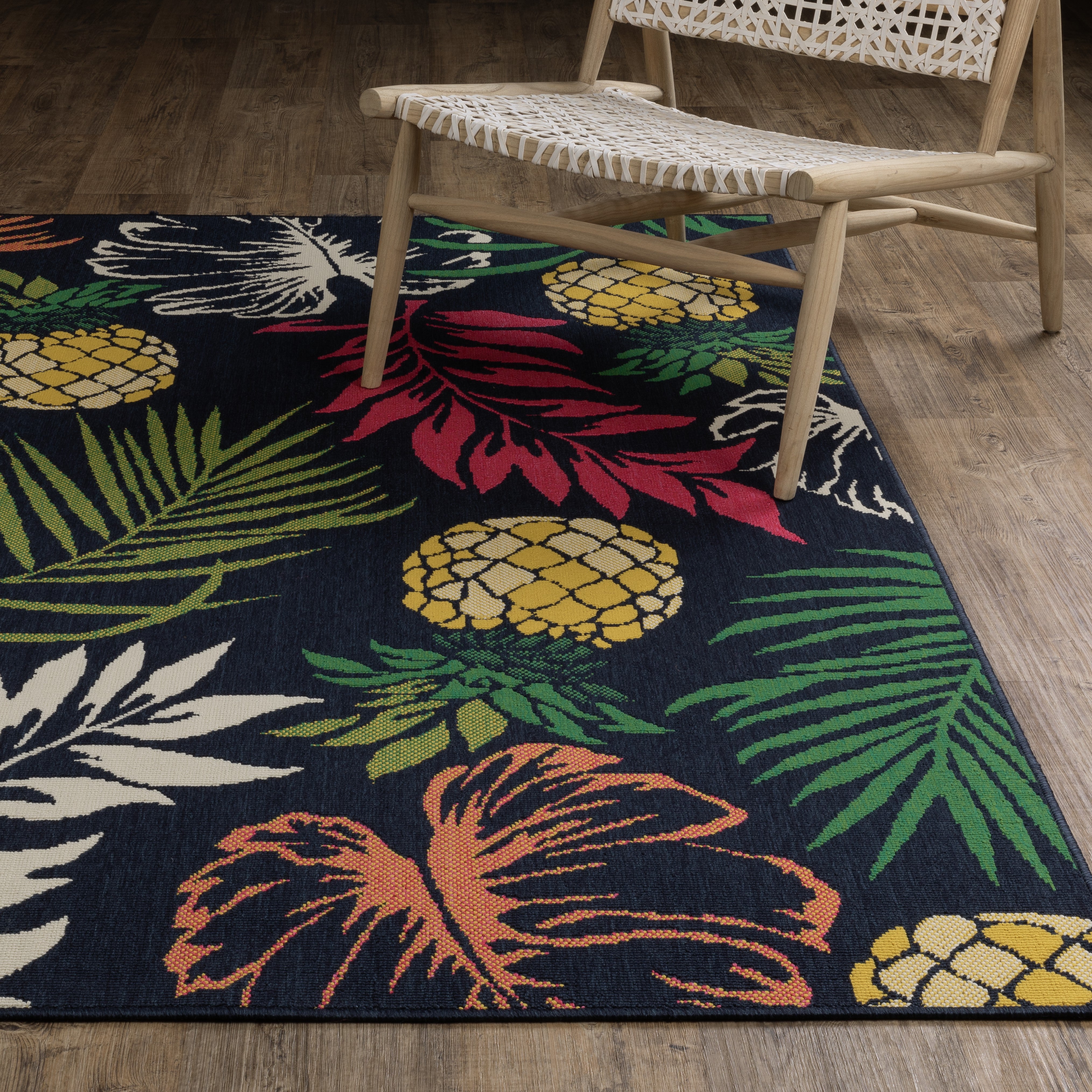 a little preppy and a lot of fun! Featuring iconic motifs in vibrant shades of sunflower yellow and flamingo pink alongside a classic navy and green duo, this collection is sure to bring feelings of sweet summer year-round. Power-loomed of 100% polypropylene, these easy-care rugs are perfect for use inside or outside the home.