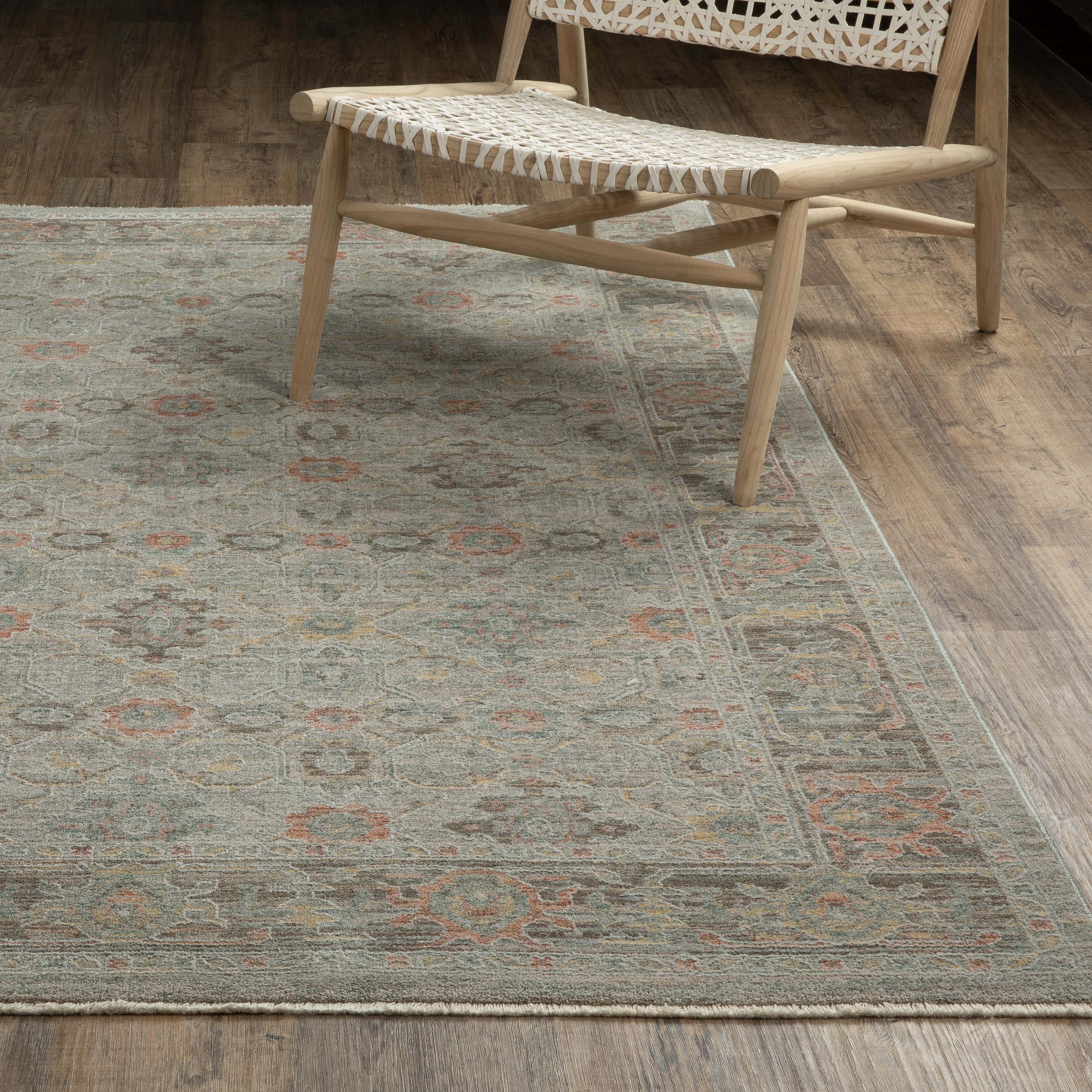 "First off, I love this rug .. the colours and the texture of the rug turned out to be exactly what I was hoping for - a very neutral-looking moss green and ivory background with a few tiny pale blue accents. Love the look!"