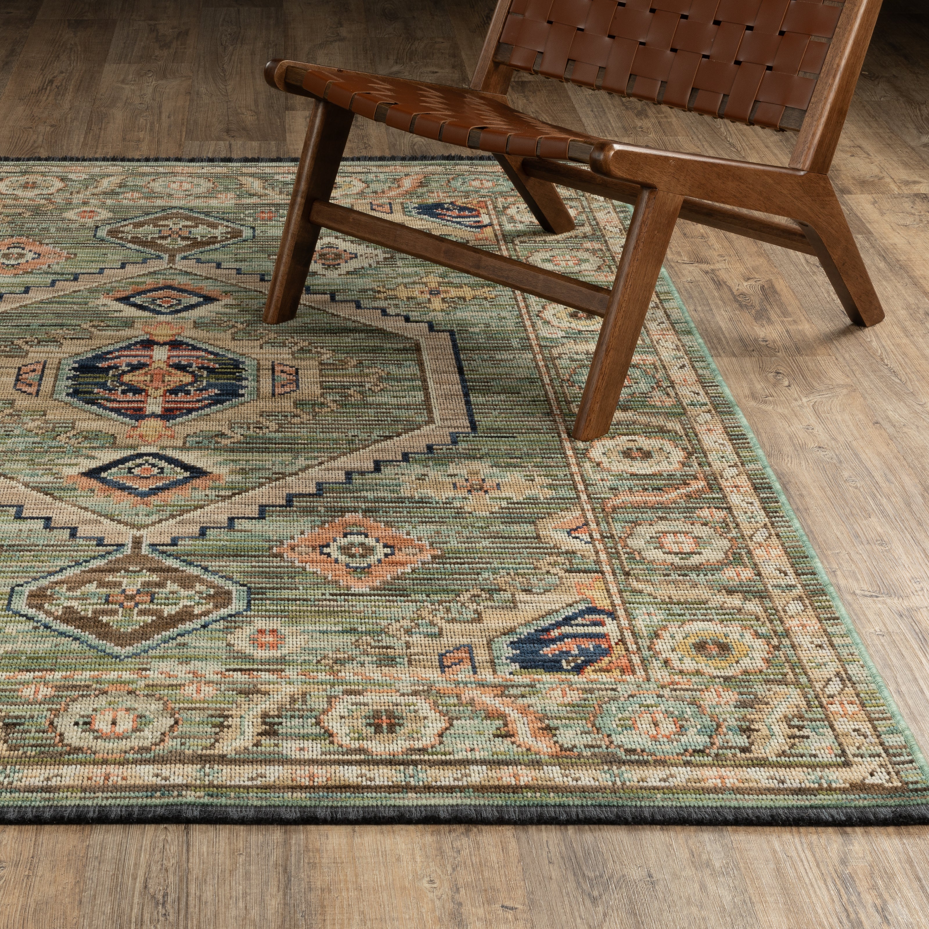 The Legacy collection showcases the artistry of space-dyed wool and nylon in a beautifully crafted area rug. Woven on an Axminster loom, the pieces offer exceptional quality and durability while maintaining the look of a hand-knotted rug through the use of zero pile as well as incorporated fringe. The saturated and textured jewel tones of sapphire, emerald and amethyst, as well as rich shades of crimson, gold and brown are wonderfully striking in contrast to the deep midnight shade of the expos